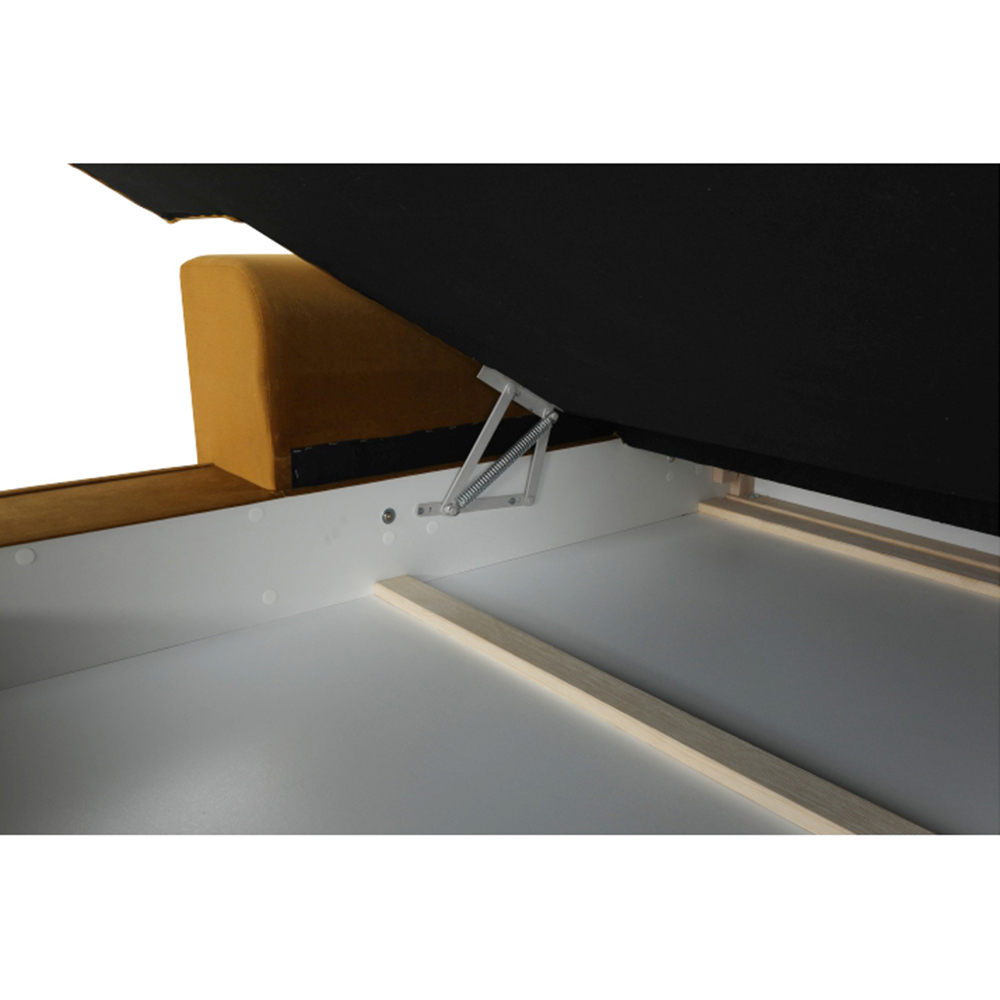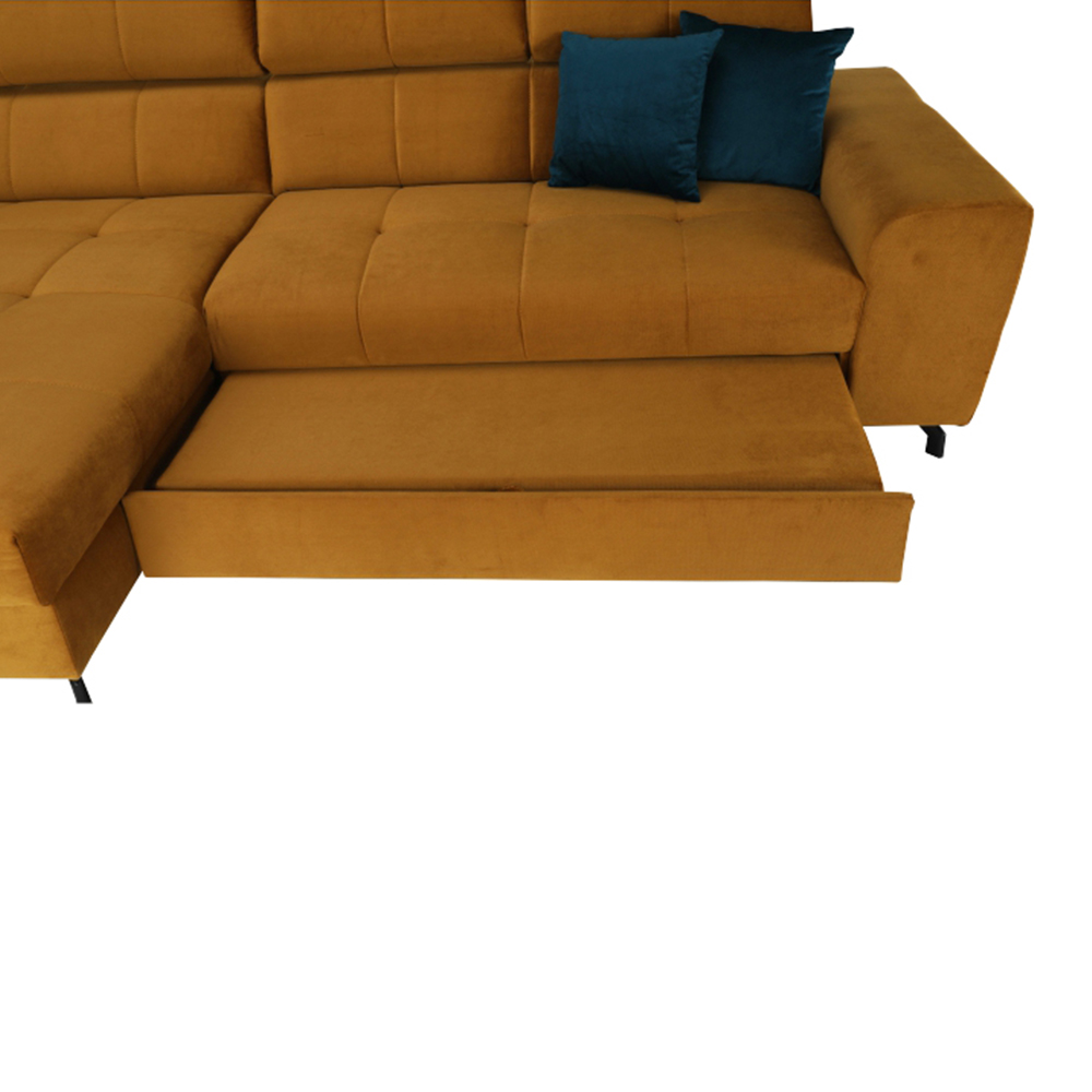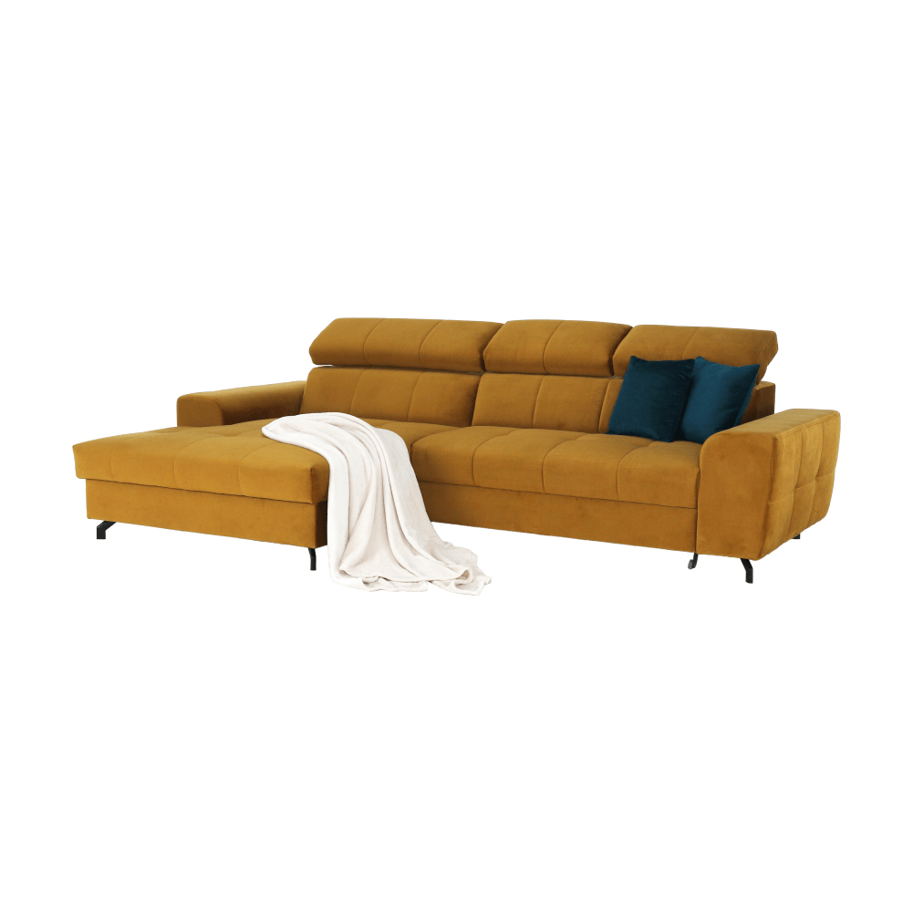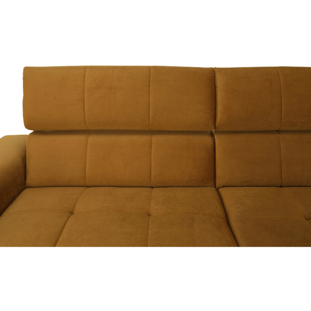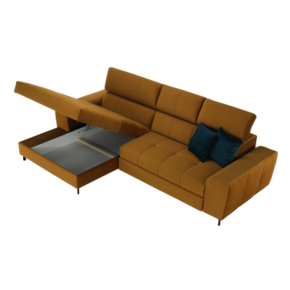 Canapea extensibilă tapițată cu stofă. După extindere are dimensiniea de 127x233 cm.