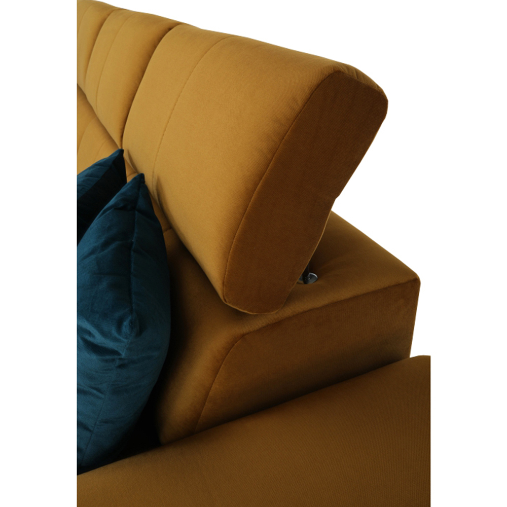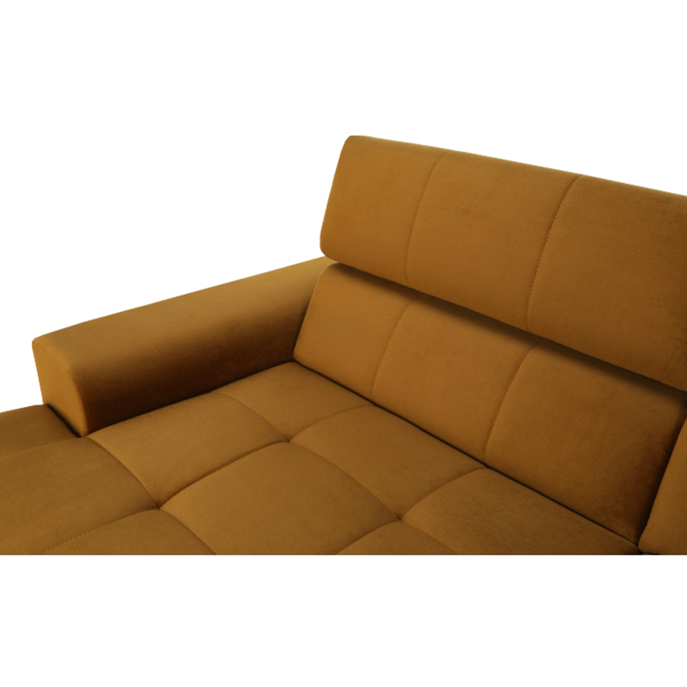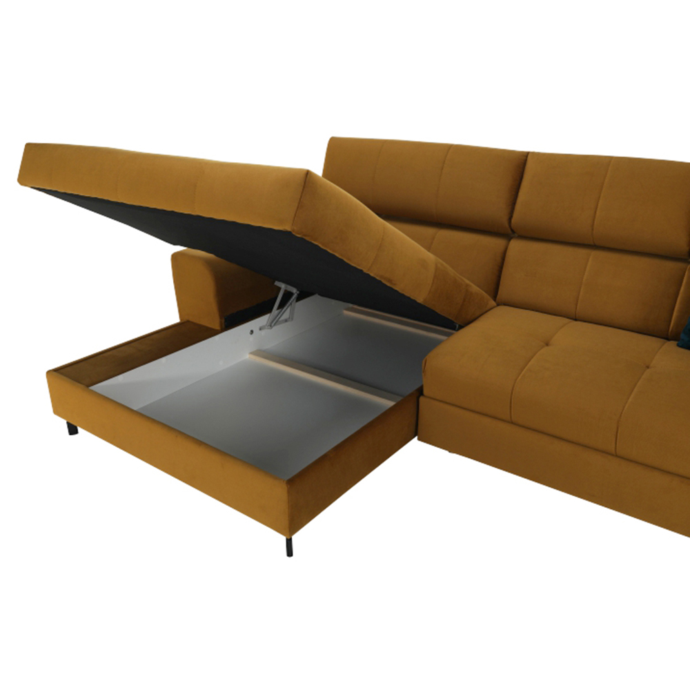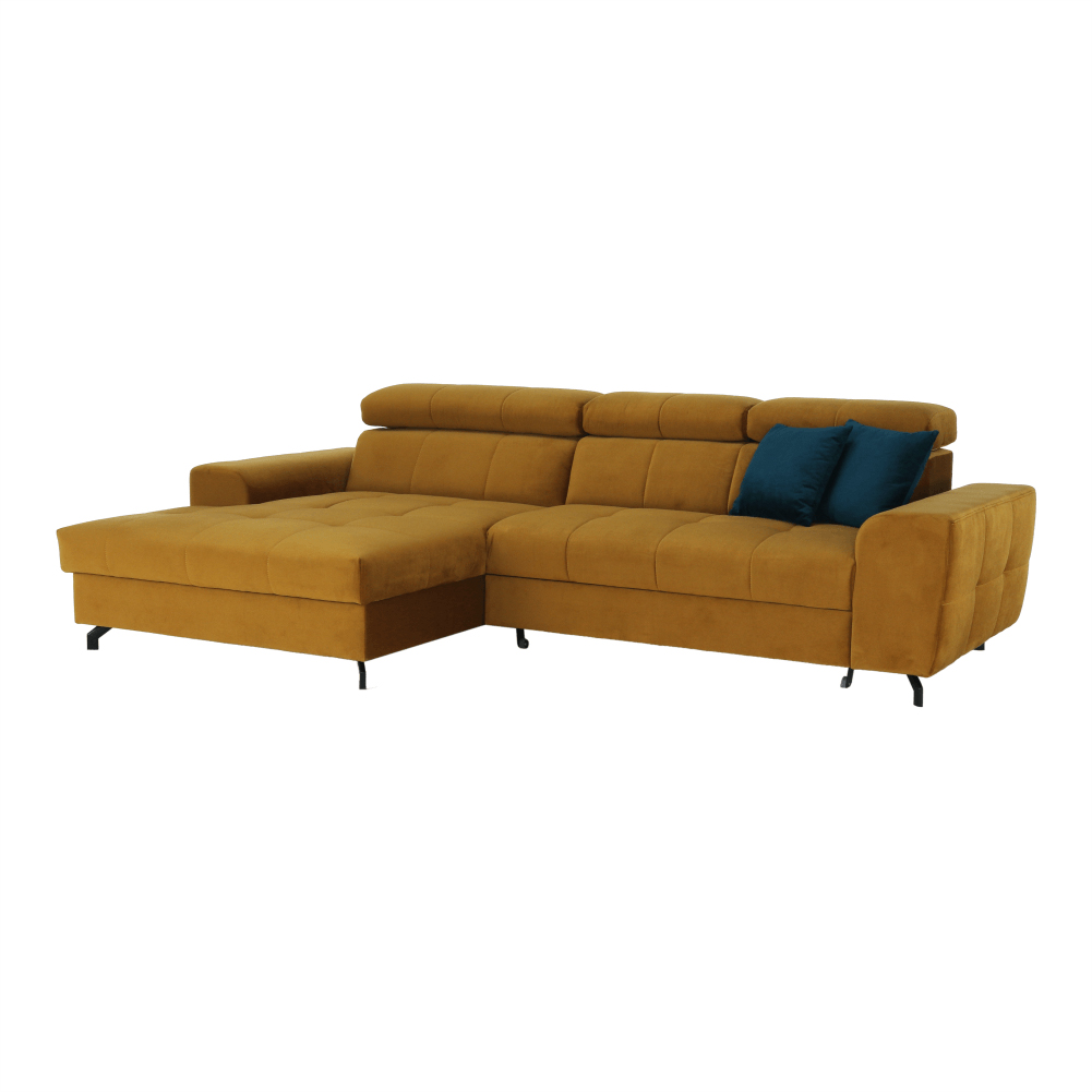 Canapea extensibilă tapițată cu stofă. După extindere are dimensiniea de 127x233 cm.