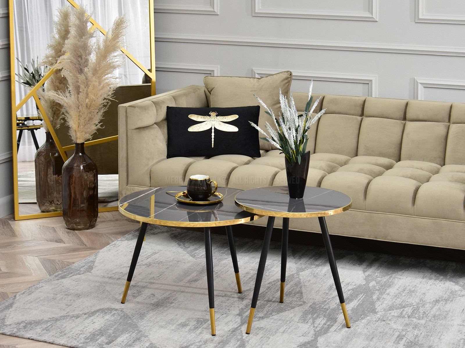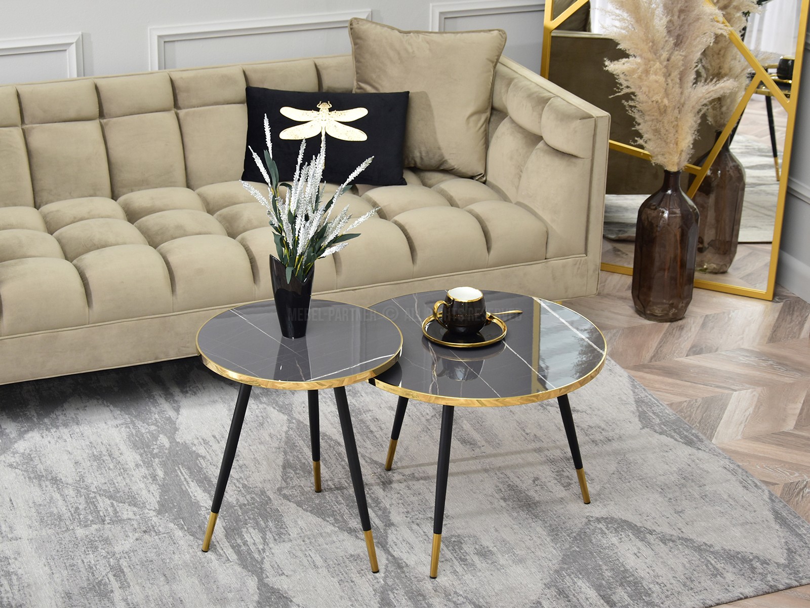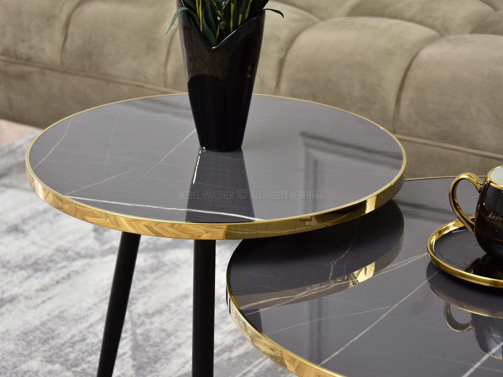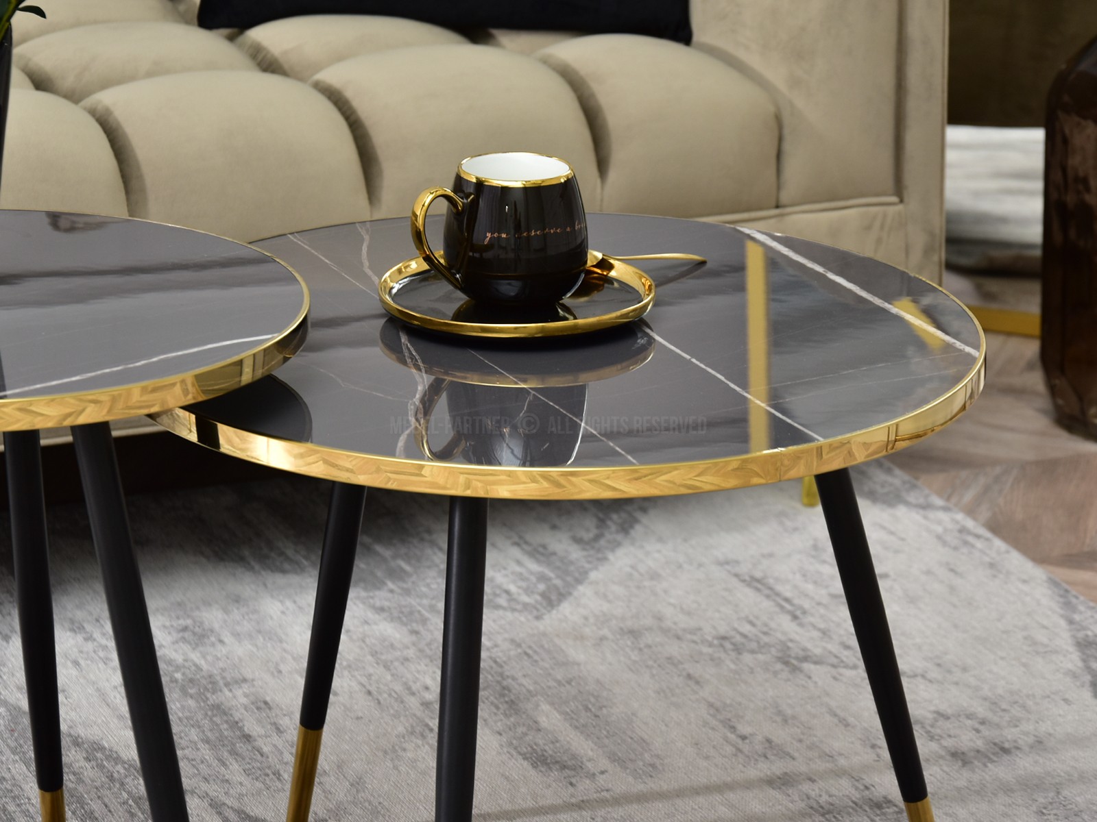 Set de 2 măsuțe de cafea Zoya Zest S (marmură grafit + aurie + negru)