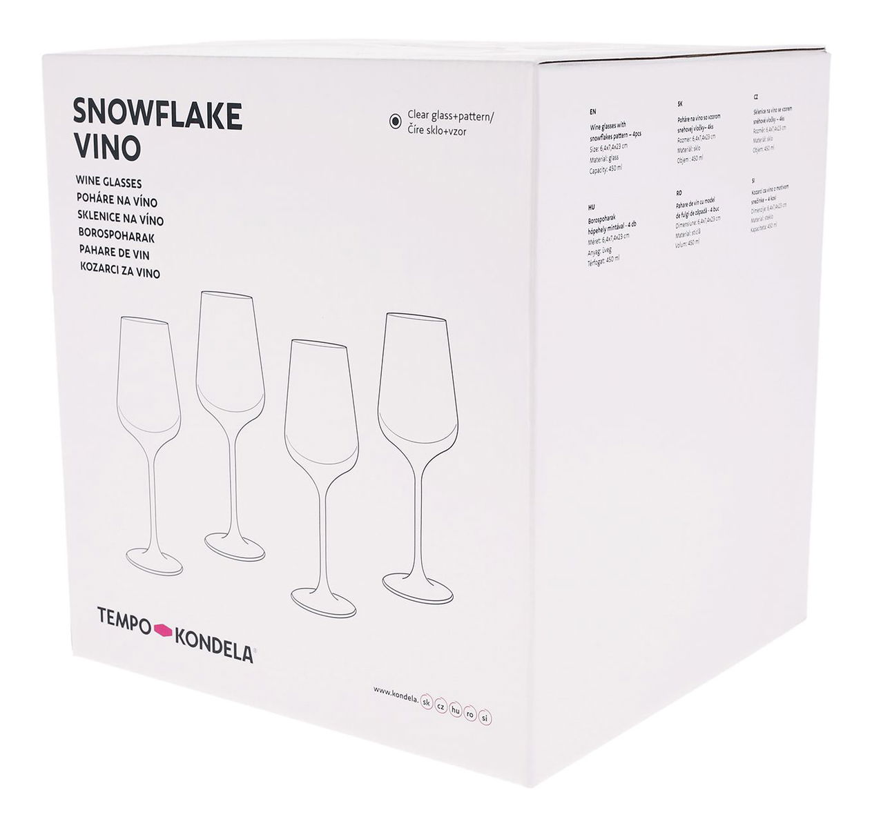 Set de 4 pahare de vin cu cristale 450ml Snouflek