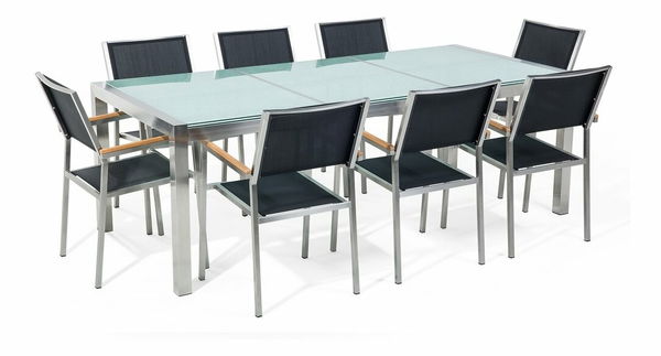 - Set de masă pentru grădină Grosso (negru) (blat din sticlă 210x100 cm) (scaune negre)