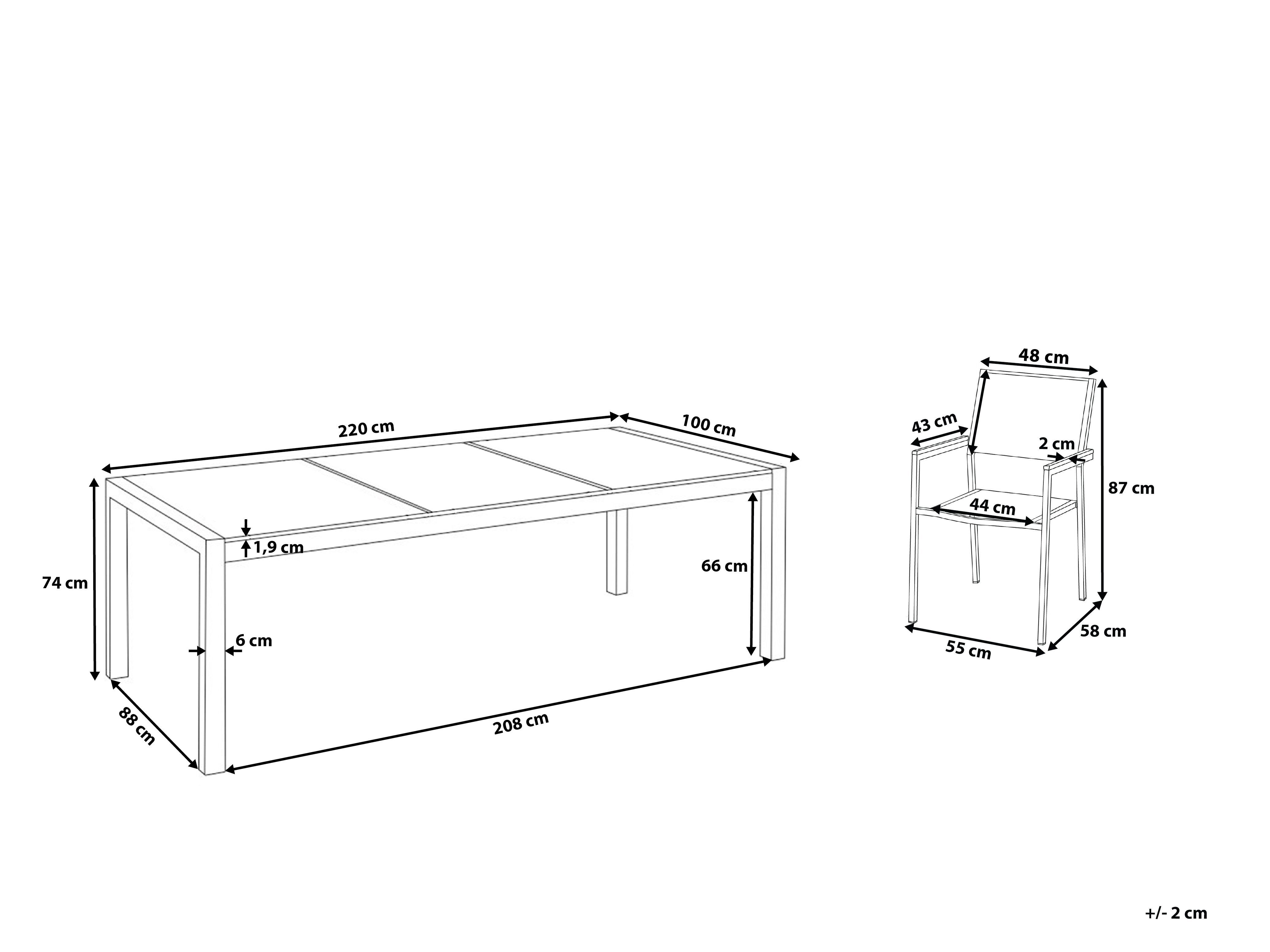 Set de masă pentru grădină Grosso (negru) (scaune din ratan) (pentru 8 persoane) (piatră)