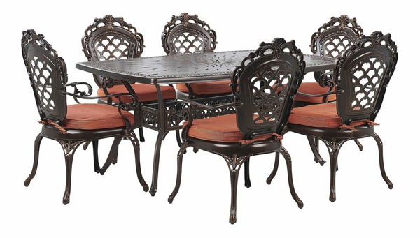 Set de masă pentru grădină LIZZI (aluminiu) (maro) (pentru 6 persoane)