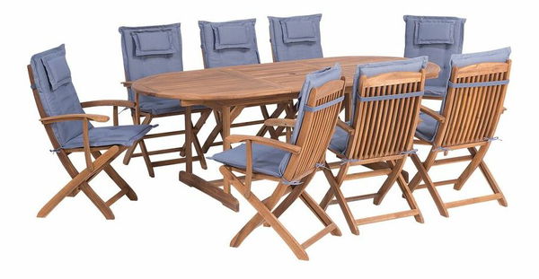 - Set de masă pentru grădină Mali (lemne deschis) (perne albastre)