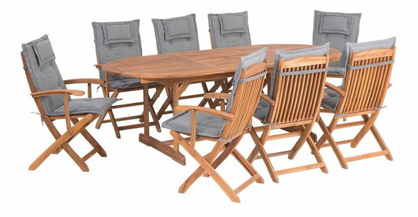 - Set de masă pentru grădină Mali (lemne deschis) (perne gri)