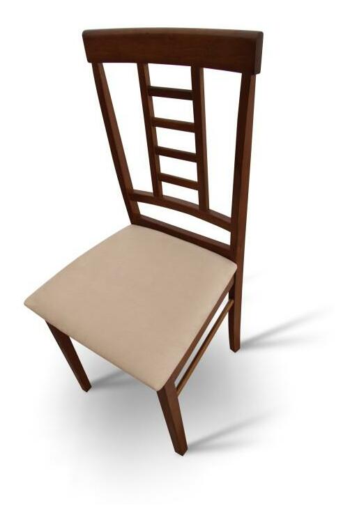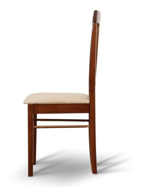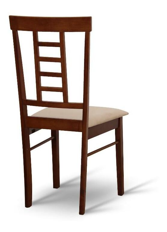 Set de bucătărie clasic Oleg, compus din masă și 6 scaune, cu șezut din material bej. Setul este în varianta nucului.
