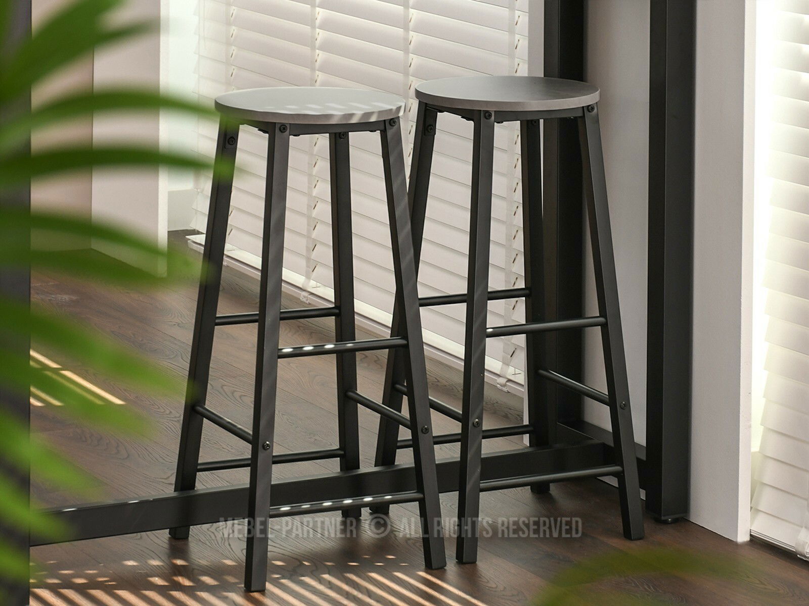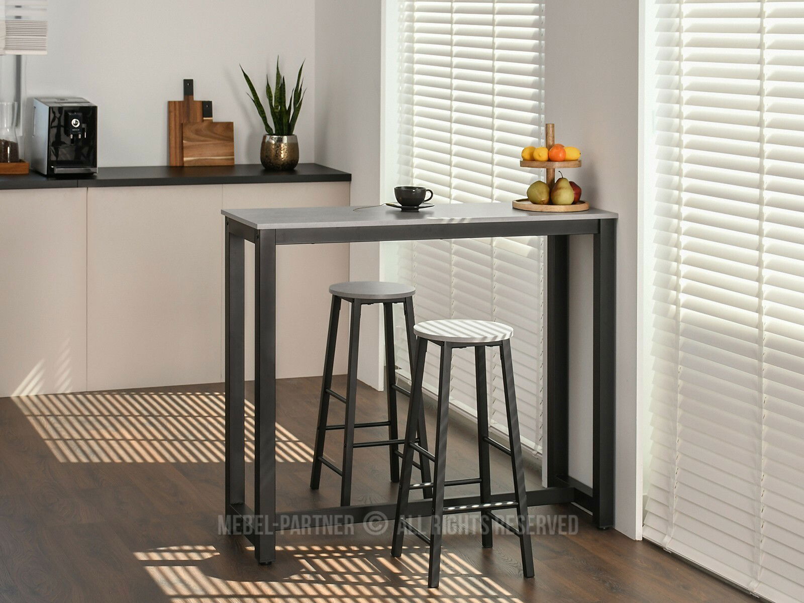 Set masă scaune pentru sufragerie Remma (beton + negru) (pentru 2 persoane)