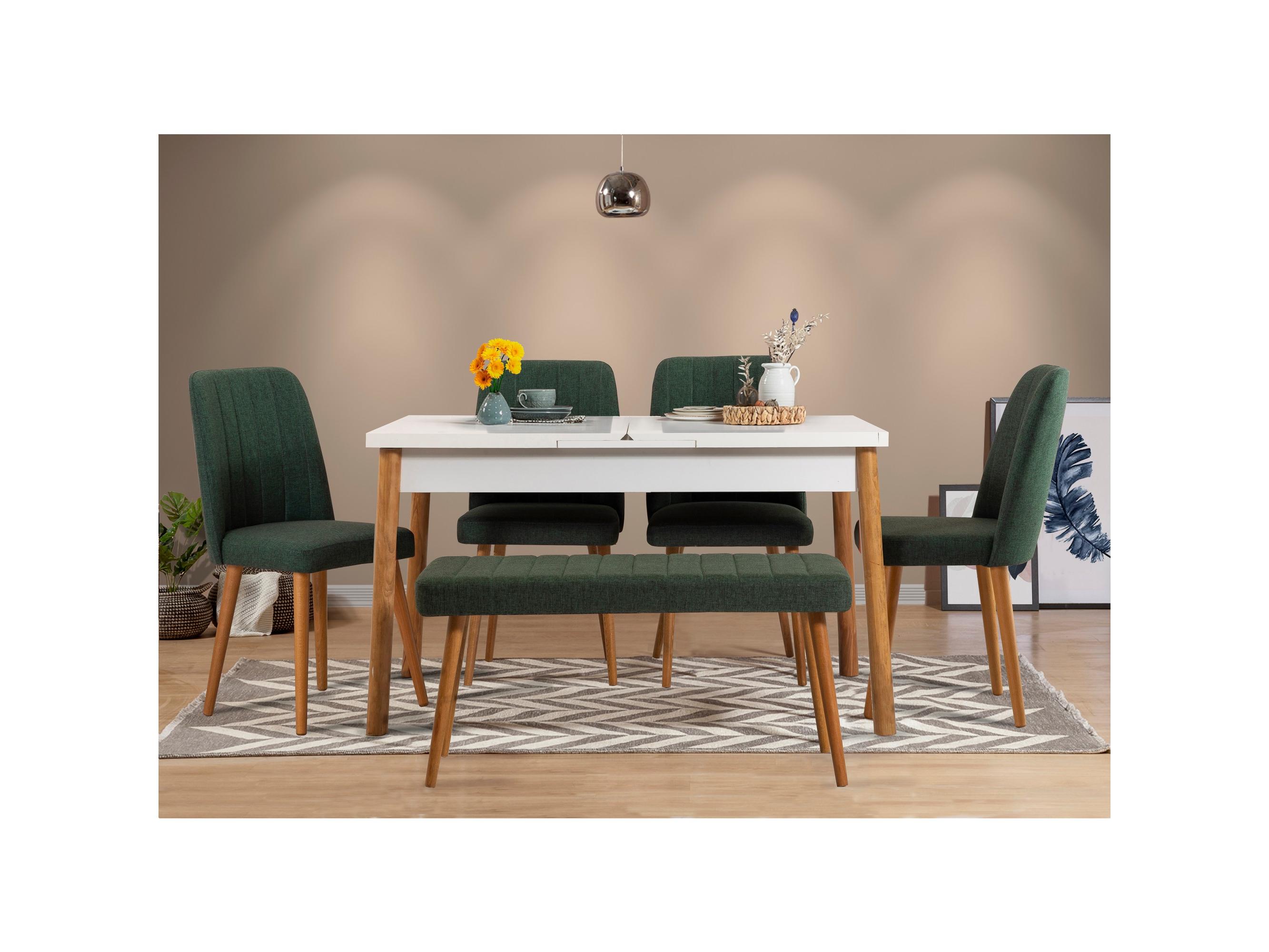Set mobilier sufragerie Senteago 1 (pentru 6 persoane) (pin atlantic + alb + verde)