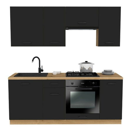 Set mobilier bucătărie 200 cm Vestia 1 (stejar evoke + negru)