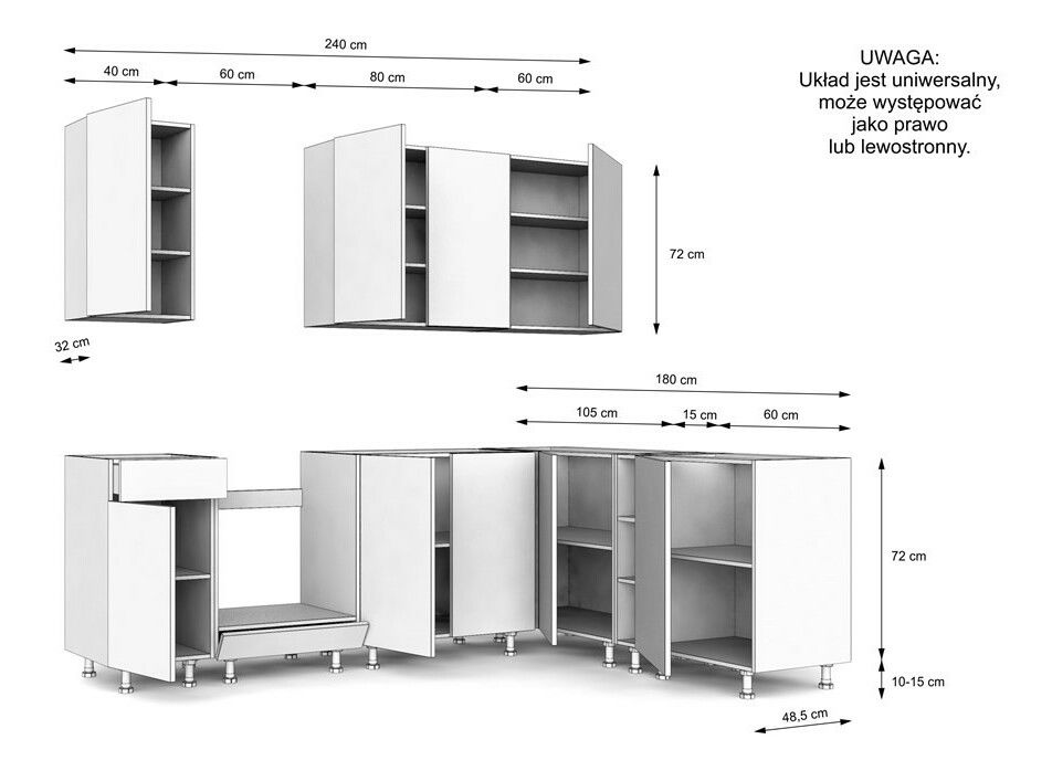 Set mobilier bucătărie de colț 240x180 cm Vestia 1 (cashmir + stejar evoke)