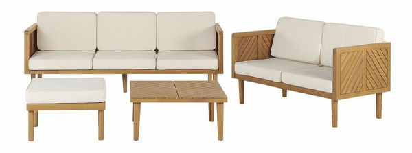 - Set mobilier de grădină Blas (lemn deschis de salcâm + crem alb)