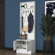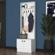 Setul de mobilier Montorio, finisat în alb, este alegerea ideală pentru orice locuință modernă. Acest set compact combină elemente esențiale precum dulapiorul pentru depozitare, spațiul pentru agățat haine și accesorii, dar și raftul superior pentru decor sau obiecte mici, oferind o soluție practică și estetică de mobilier pentru hol.