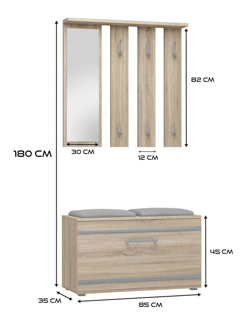 Set mobilier hol Oasis 1 (stejar sonoma) (cu oglindă)