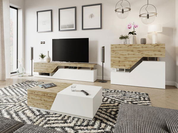 Set mobilier living Bokas II (Alb + Stejar wotan)