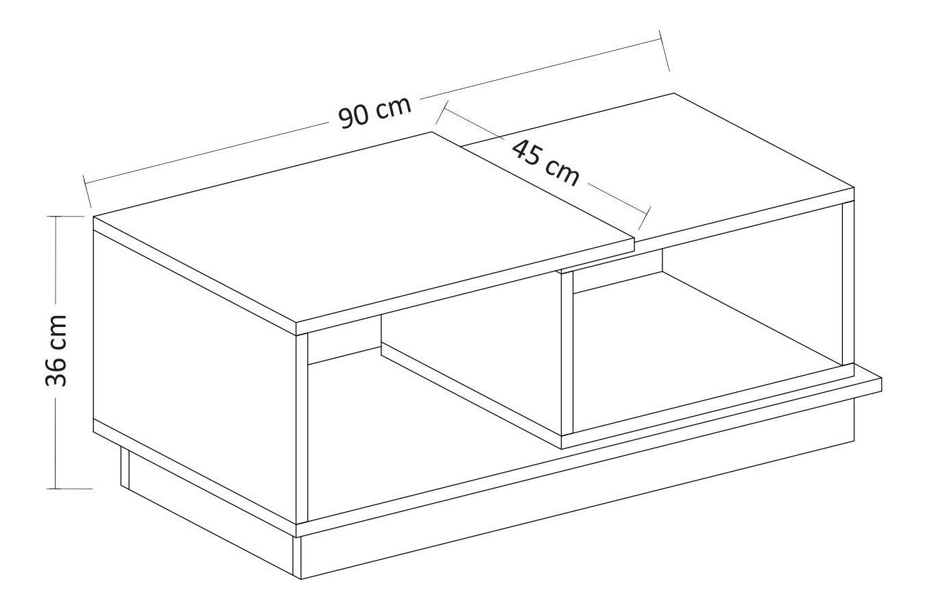 grosime: 18 mm, Cadru TV: lățime: 180 cm, înălțime: 82 cm, adâncime: 48,6 cm, măsuță cafea: lățime: 90 cm, înălțime: 36 cm, adâncime: 45 cm