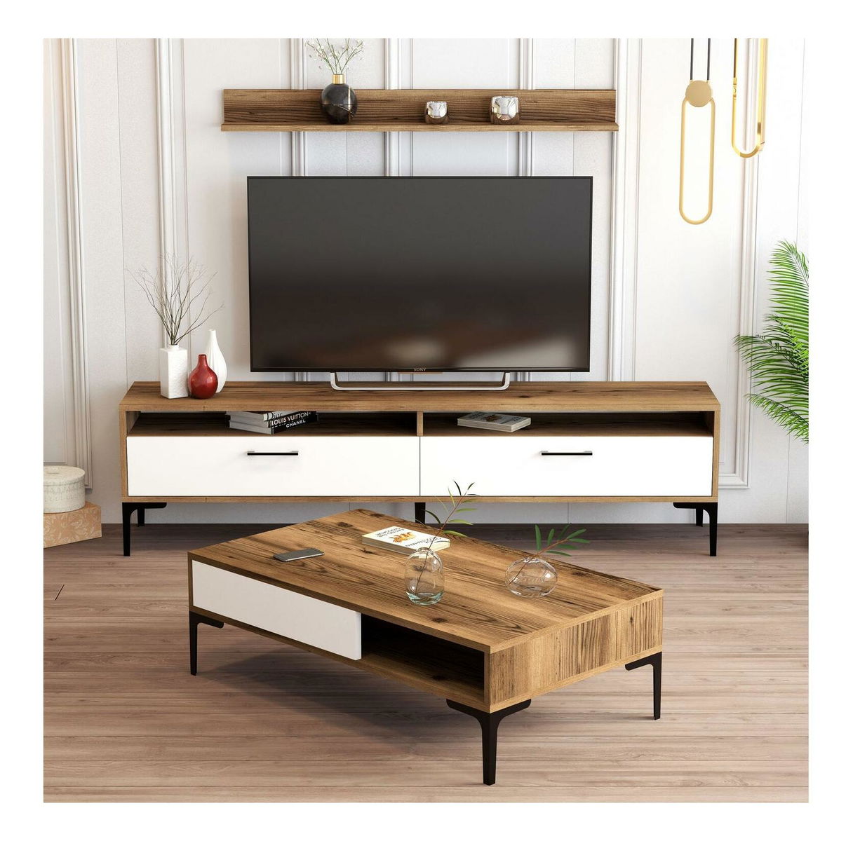 grosime: 18 mm, cadru TV: lățime: 180 cm, înălțime: 47 cm, adâncime: 35 cm, dimensiuni raft de perete: lățime: 120 cm, înălțime: 11,8 cm, adâncime: 16 cm, măsuță cafea: lățime: 105 cm, înălțime: 32,6 cm, adâncime: 60 cm, picioare metalice,: 17 cm