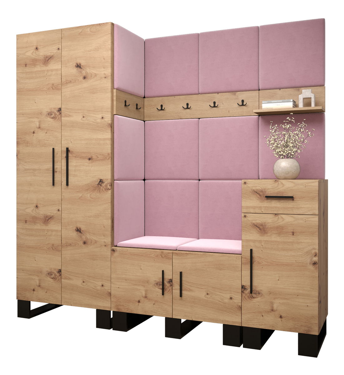 Set mobilier pentru hol Amanda 1 (Stejar artisan + roz)