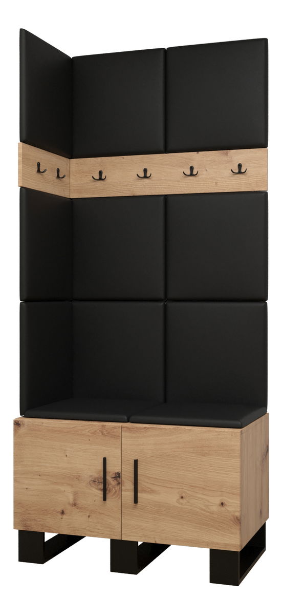Set mobilier pentru hol Amanda 11 (Stejar artisan + piele ecologică Negru)
