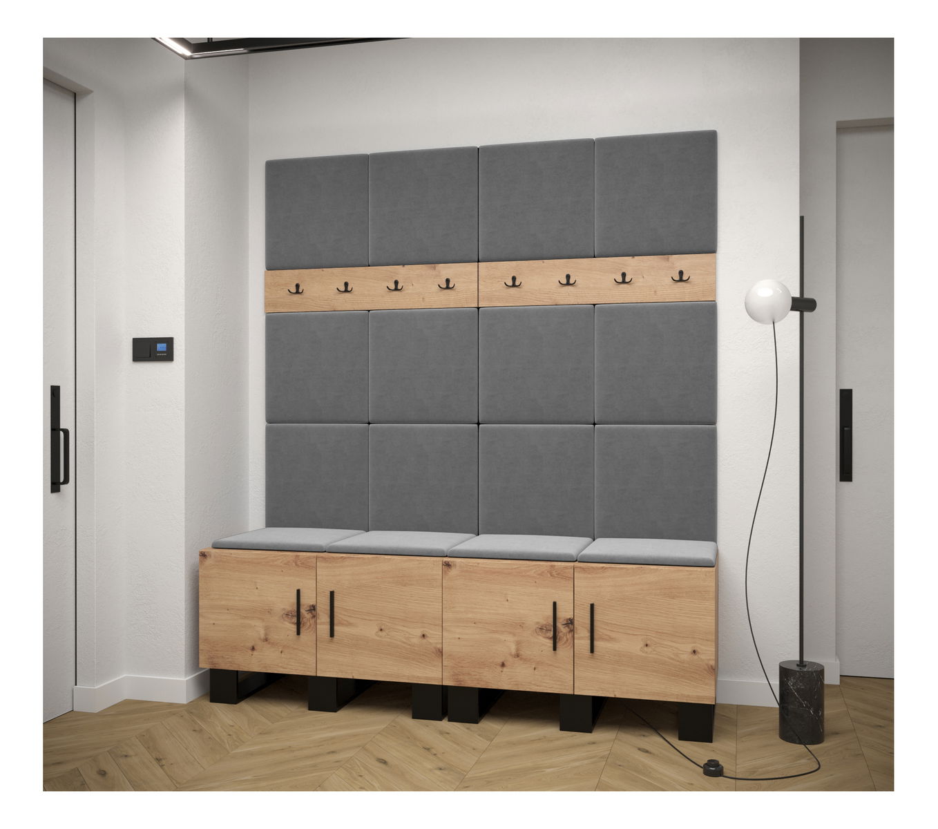 Set mobilier pentru hol Amanda 3 (Stejar artisan + gri închis)