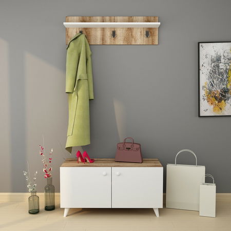 Set mobilier pentru hol Gardi (Stejar + Alb)