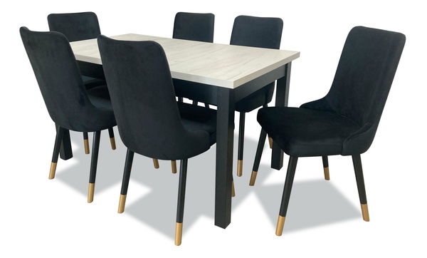Set mobilier sufragerie Alita 2 (alb + albastru închis) (pentru 6 persoane)