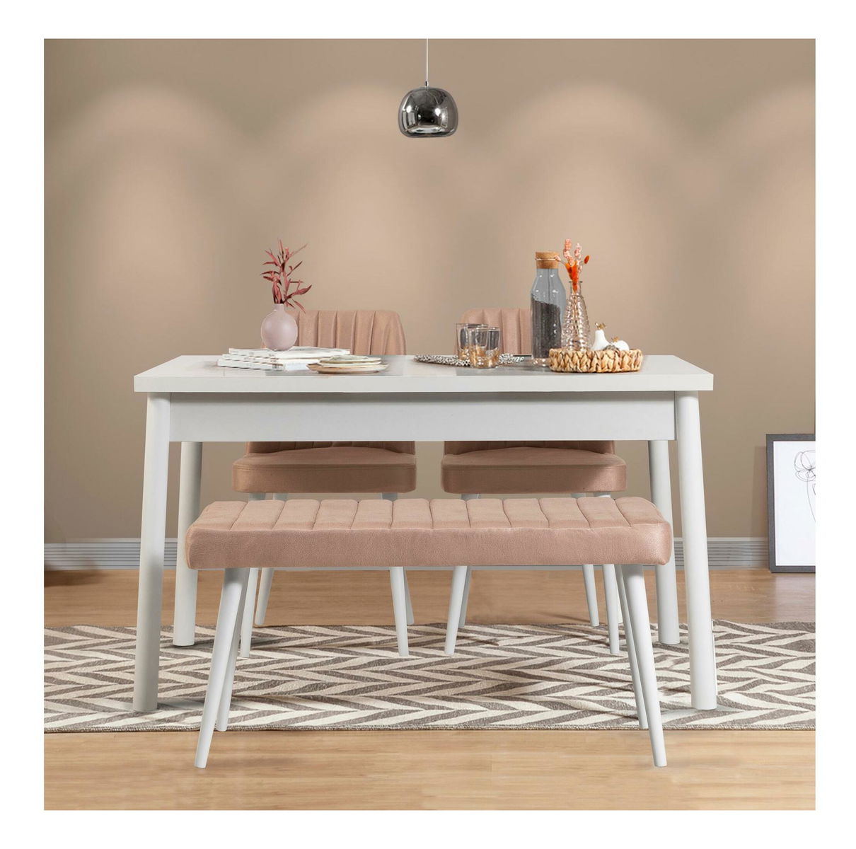 Set mobilier sufragerie Bimuvo 4 (alb + piatră) (pentru 4 persoane)
