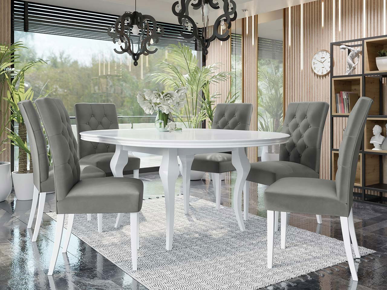 Set mobilier sufragerie (pentru 6 persoane) Jundia 6 (alb + gri verde)