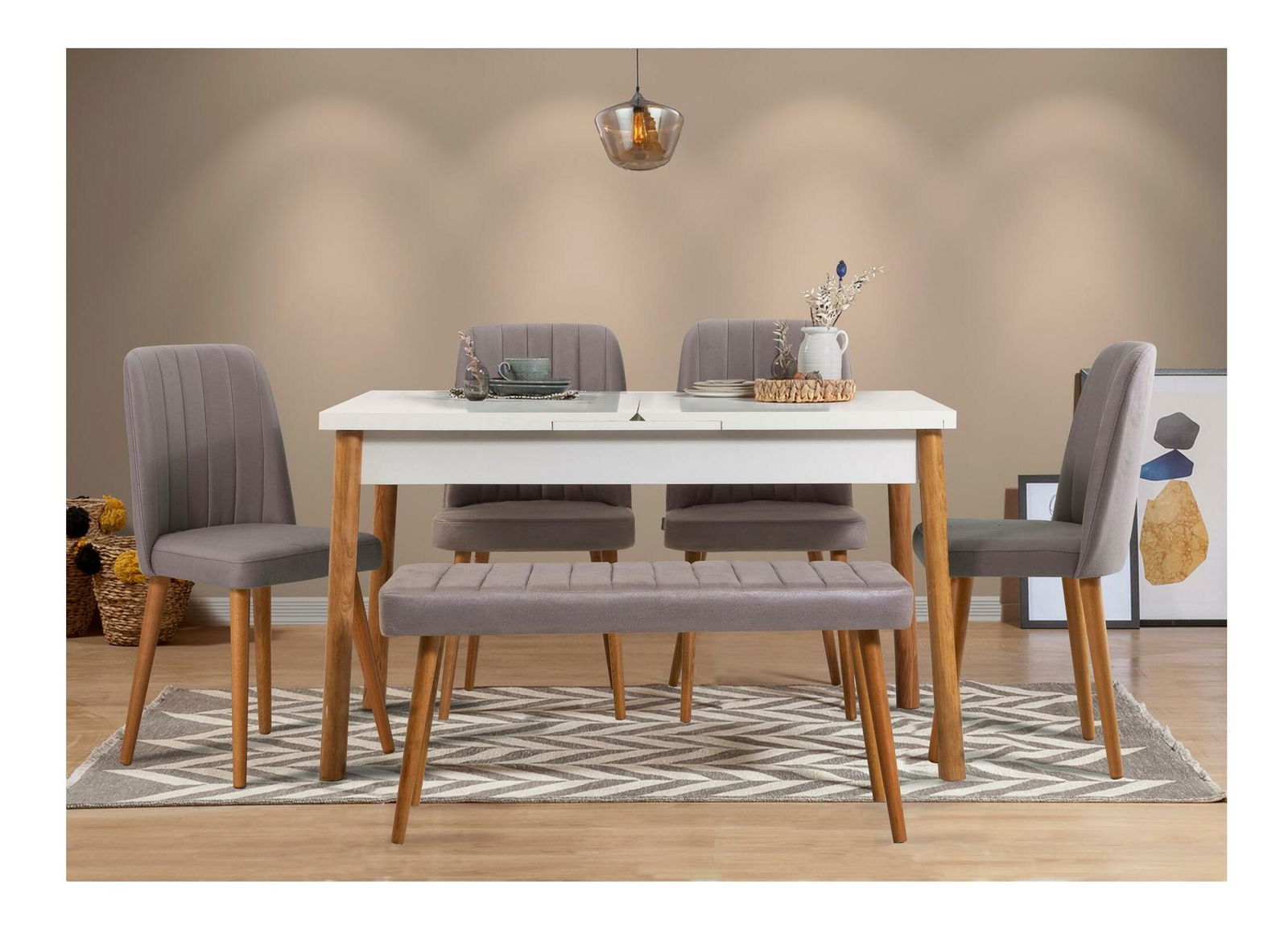 Set mobilier sufragerie Senteago 1 (pentru 6 persoane) (pin atlantic + alb + gri)