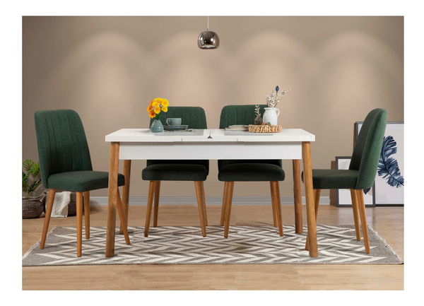 Set mobilier sufragerie Vlasta 5 (pin atlantic + alb + verde) (pentru 4 persoane)