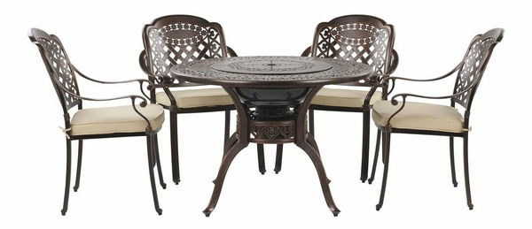 Set pentru grădină MENEF (cu grătar) (maro închis) (pentru 4 persoane)