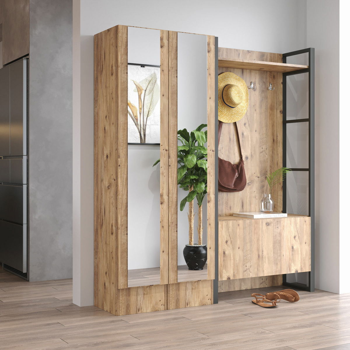 Mobilier pentru hol - Mike 18 (Pin antlantic) este un accesoriu ideal pentru zona dvs. de intrare. Cu o înălțime de 180 cm, o lățime de 161 cm și o adâncime de 35,5 cm, acest set oferă mult spațiu de depozitare pentru lucrurile dvs. Fabricat din pin antlantic de calitate, acest mobilier nu este doar frumos la vedere, ci și durabil și de lungă durată. Cu un design elegant și detalii practice, cum ar fi un raft pentru pantofi, oglindă și tijă de agățat, acest mobilier vă va ajuta să vă păstrați holul curat și bine organizat. Lăsați-vă fermecat de designul elegant și funcțional al mobilierului Mike 18 și faceți-vă intrarea și mai primitoare.