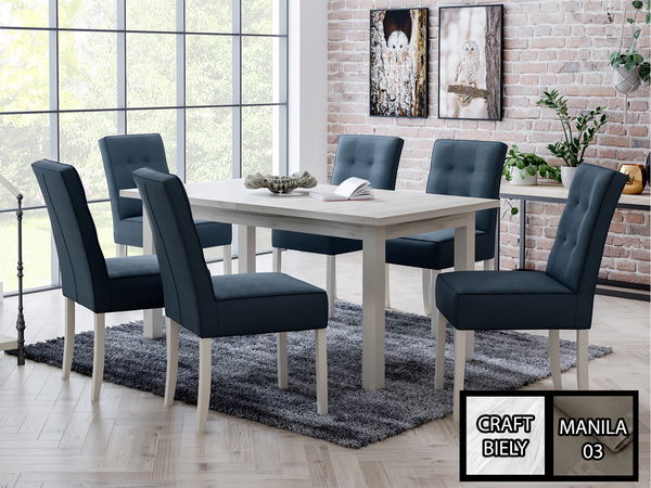 Set de sufragerie modern potrivit pentru sala de mese sau o bucătărie mai spațioasă. Poate găzdui confortabil șase persoane. O masă extensibilă practică și șase scaune luxoase și confortabile au fost create pentru petrecerea momentelor plăcute împreună.