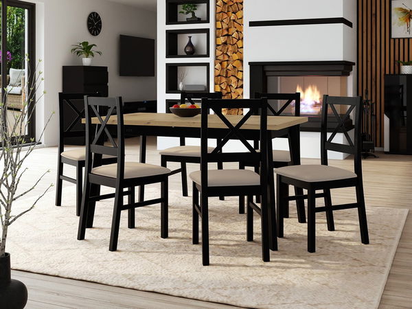 Set sufragerie (pentru 6 persoane) Amici AL43 (stejar artisan + negru + bej deschis)