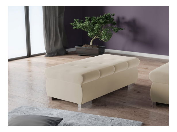 cadru din lemn + placă pal; spumă de poliuretan + arc ondulat; taburete fără spațiu de depozitare.