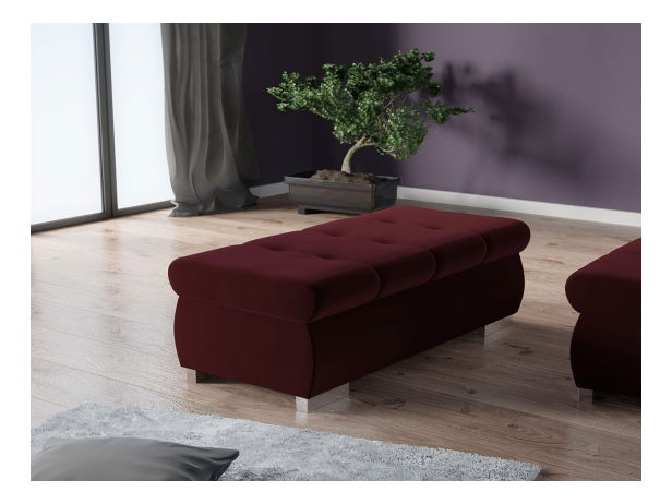cadru din lemn + placă pal; spumă de poliuretan + arc ondulat; taburete fără spațiu de depozitare.