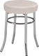 Taburet mic practic, cu o construcție cromată pe scaun, tapițat cu piele reciclabilă albă. Înălțimea scaunului este de 43 cm.