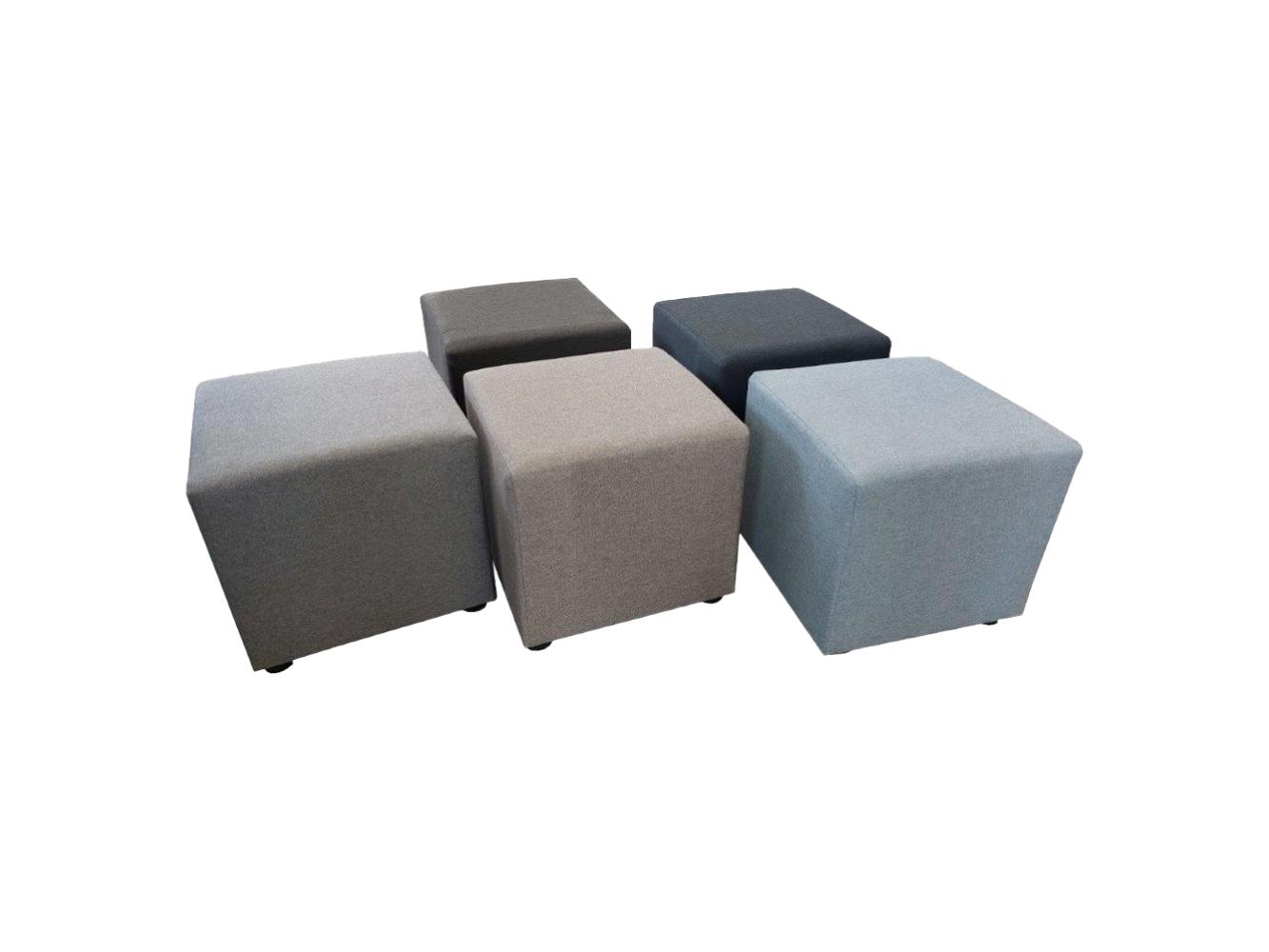 Scaunul e puțin cam tare, dar e un frumos cub gri.