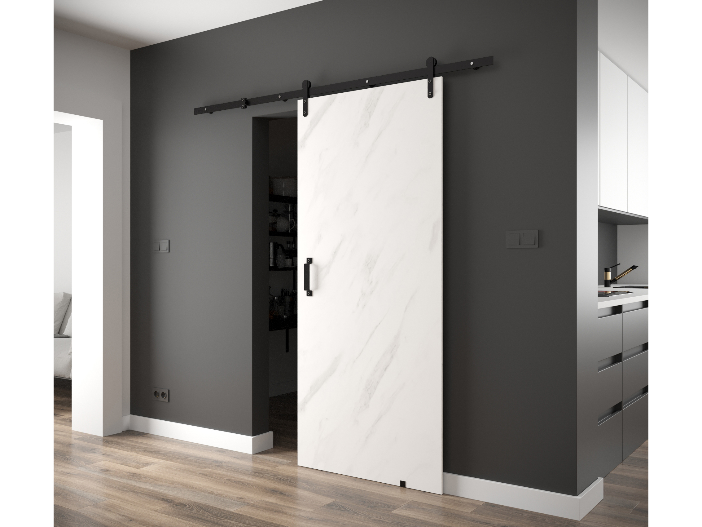 Uși culisante 90 cm Philomena I (marmură alb + negru mat)
