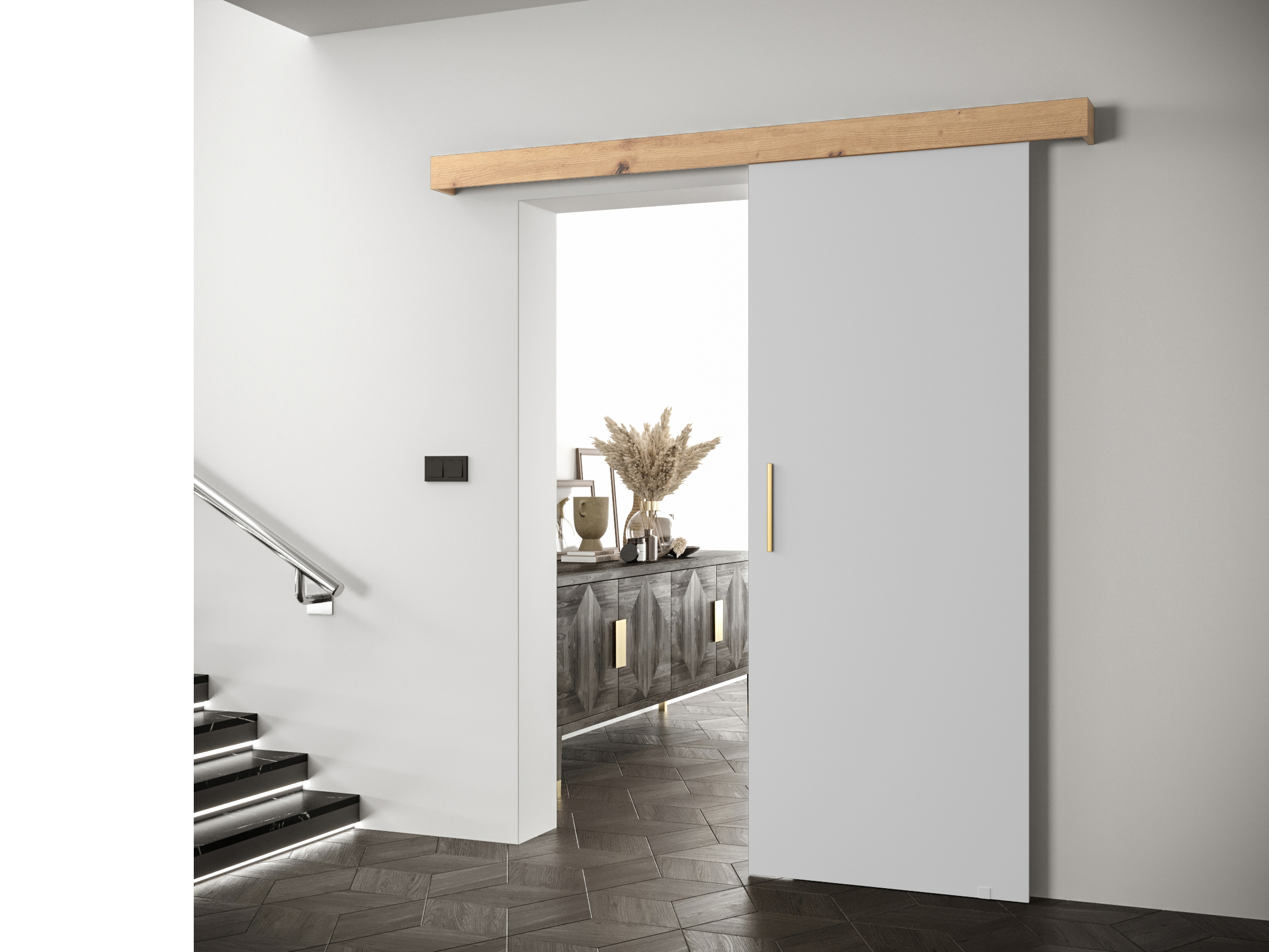 Uși culisante 90 cm Sharlene I (alb mat + stejar artisan + auriu)