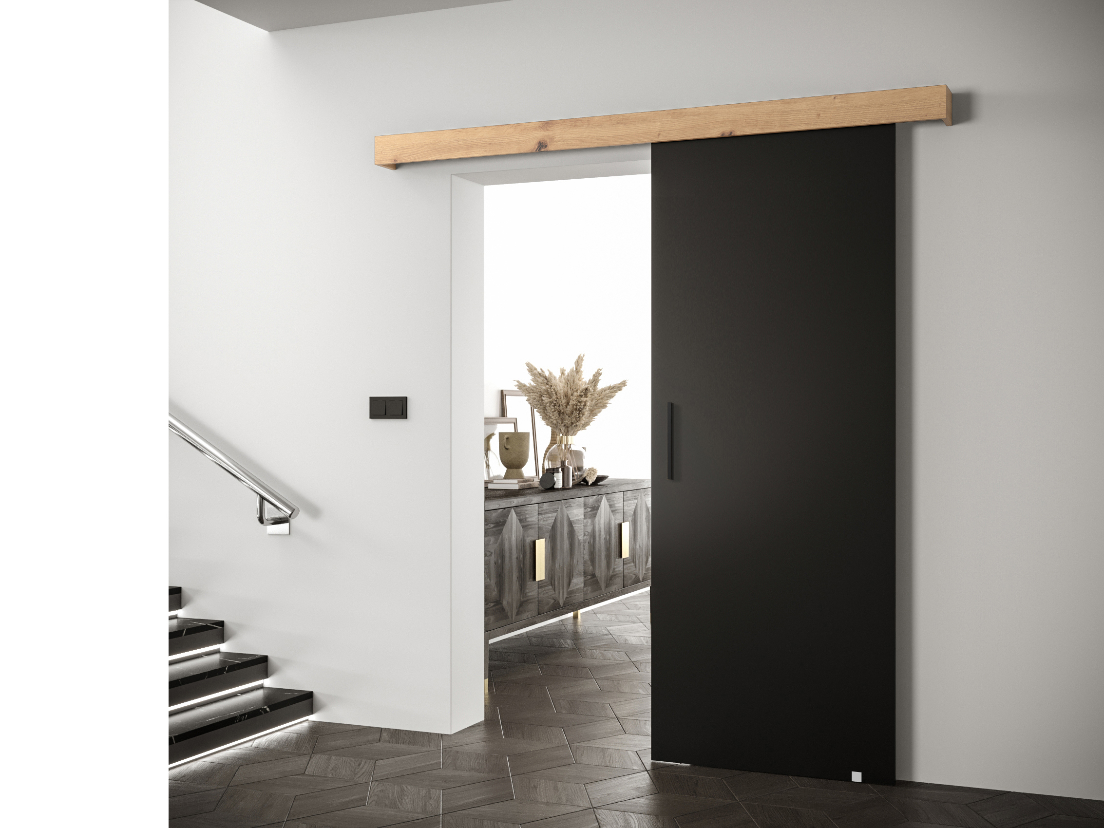 Uși culisante 90 cm Sharlene I (negru mat + stejar artisan + negru)