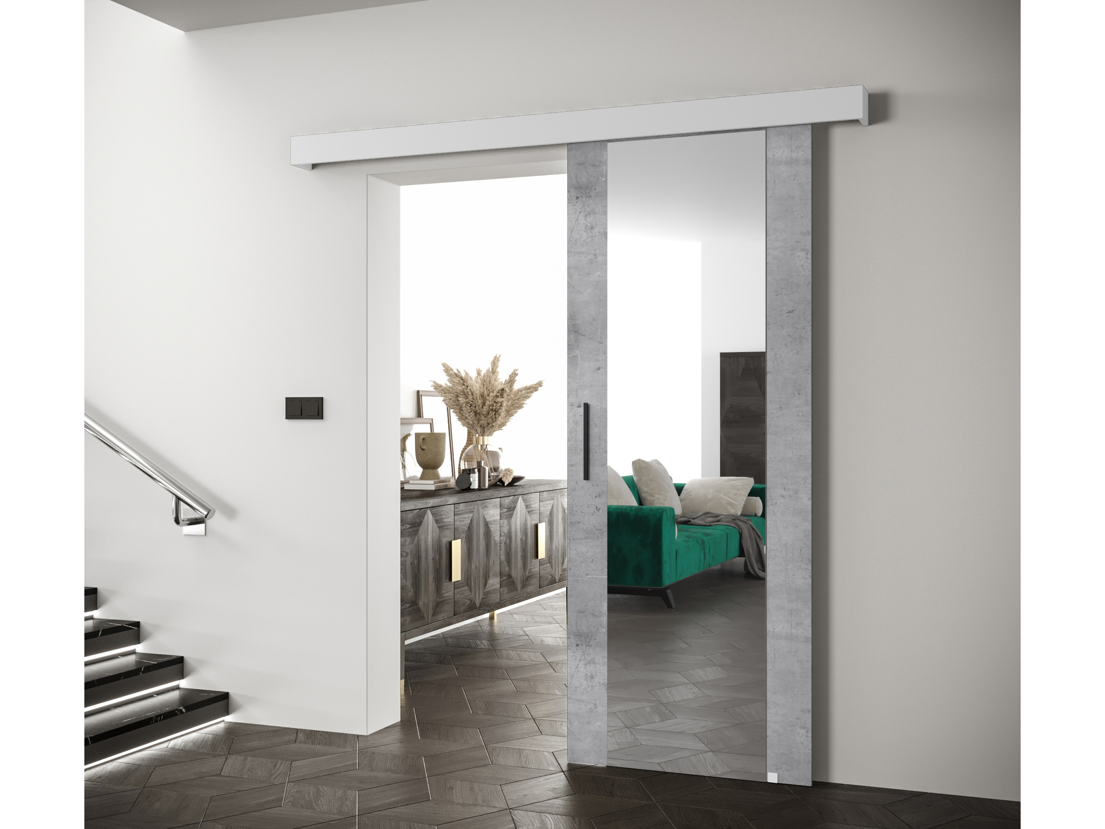 Uși culisante 90 cm Sharlene II (beton deschis + alb mat + negru) (cu oglindă)