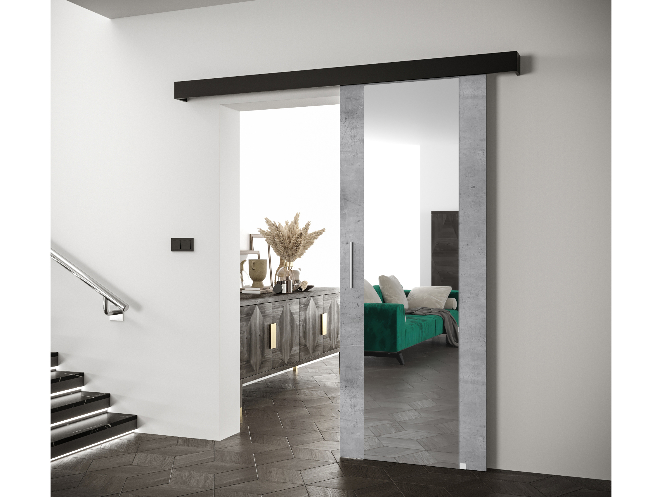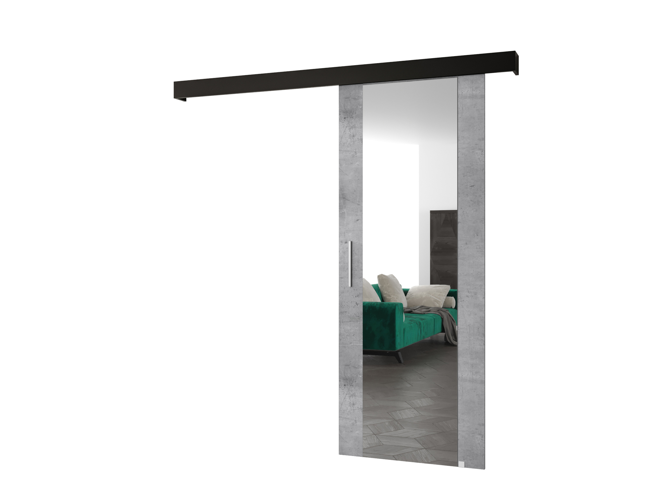 Uși culisante 90 cm Sharlene II (beton + negru mat + argintiu) (cu oglindă)