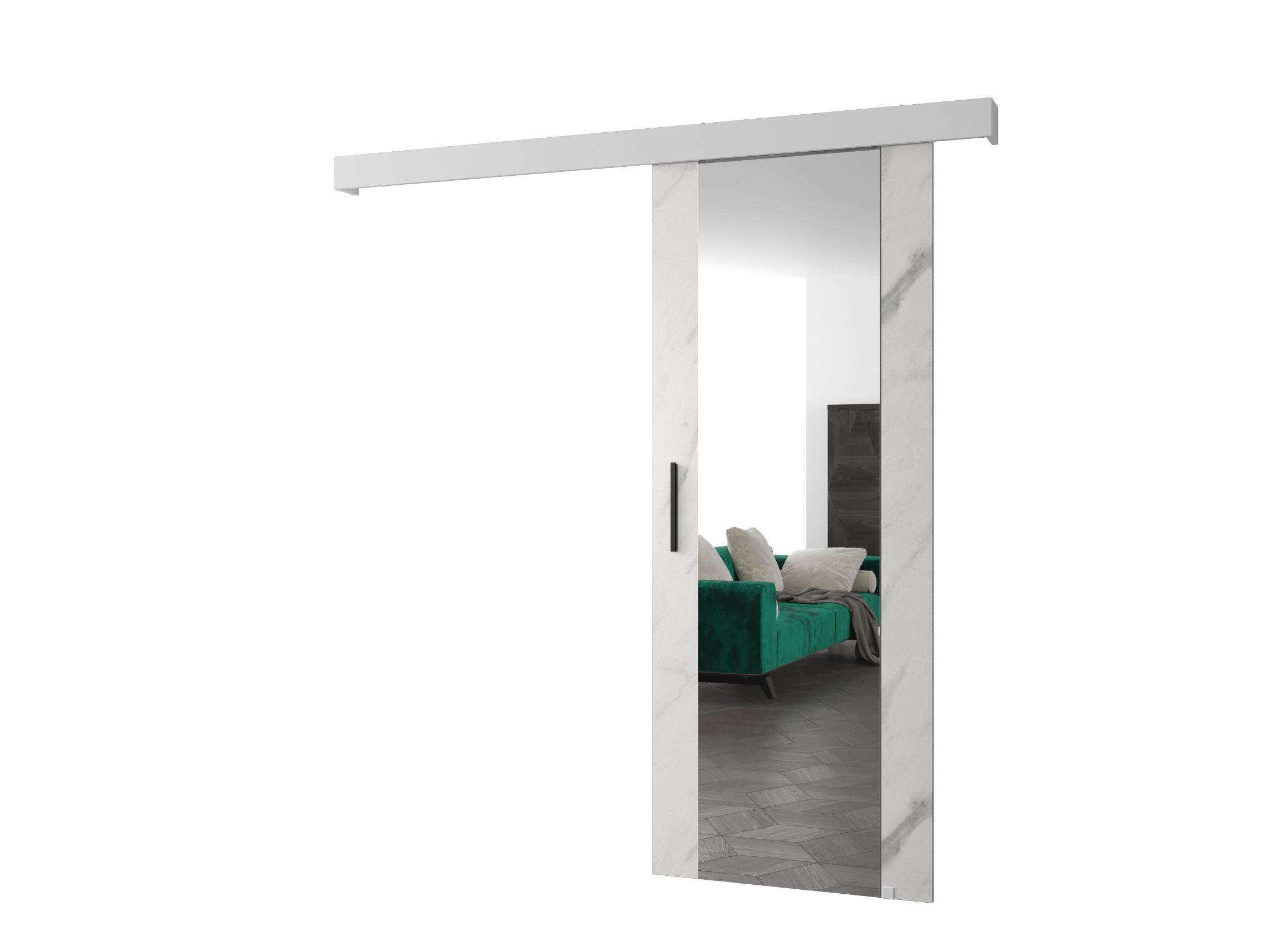 Uși culisante 90 cm Sharlene II (marmură alb + alb mat + negru) (cu oglindă)