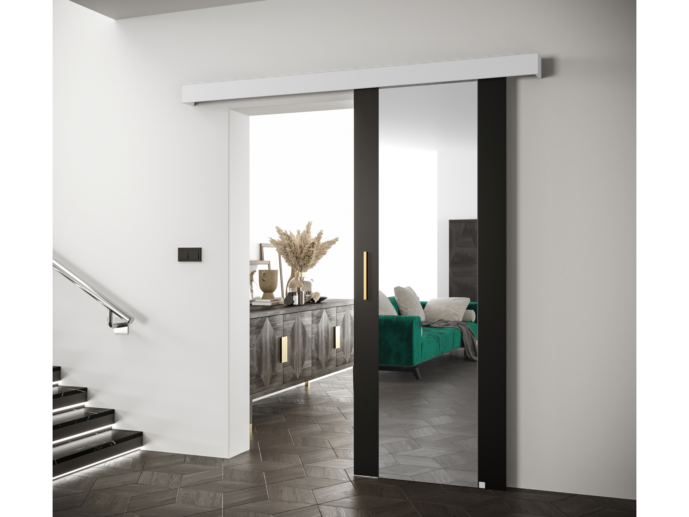 Uși culisante 90 cm Sharlene II (negru mat + alb mat + auriu) (cu oglindă)