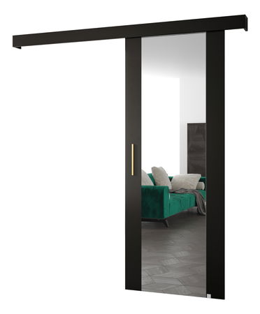 Uși culisante 90 cm Sharlene II (negru mat + negru mat + auriu) (cu oglindă)