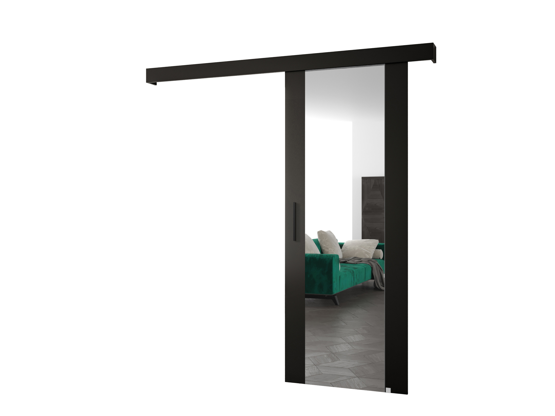 Uși culisante 90 cm Sharlene II (negru mat + negru mat + negru) (cu oglindă)