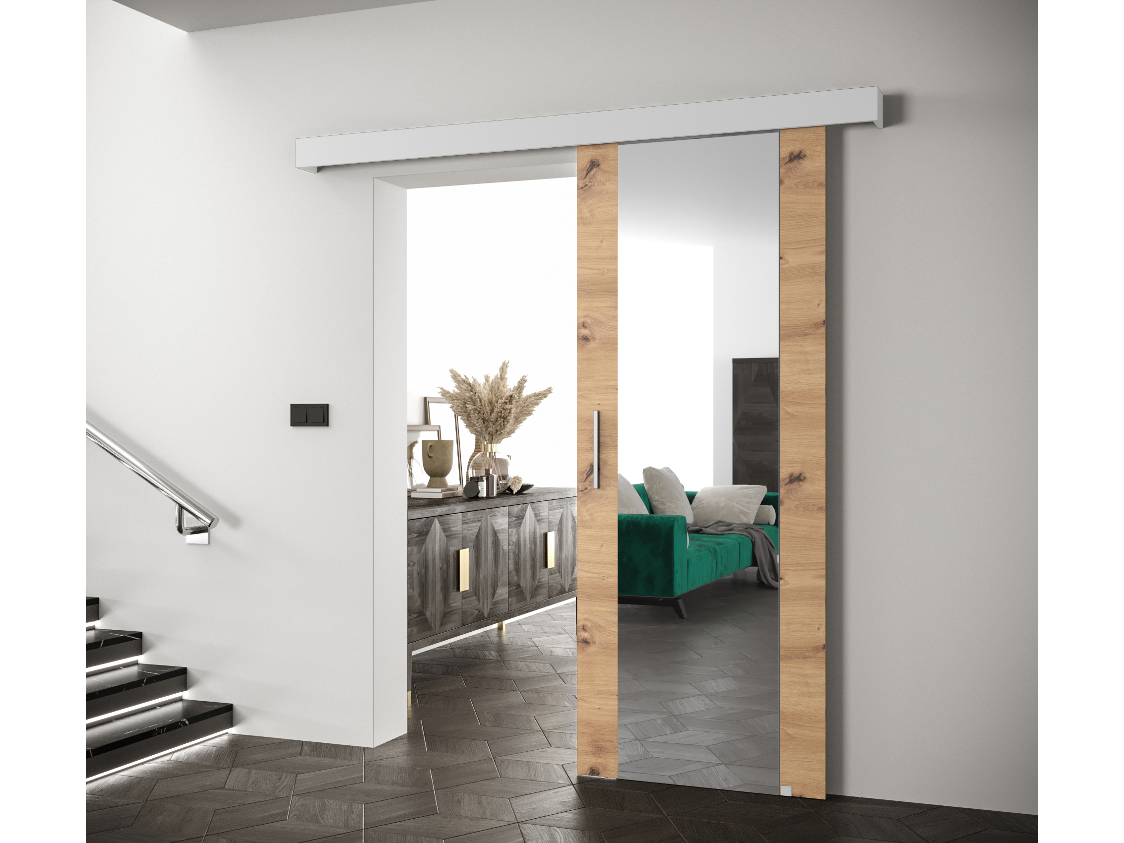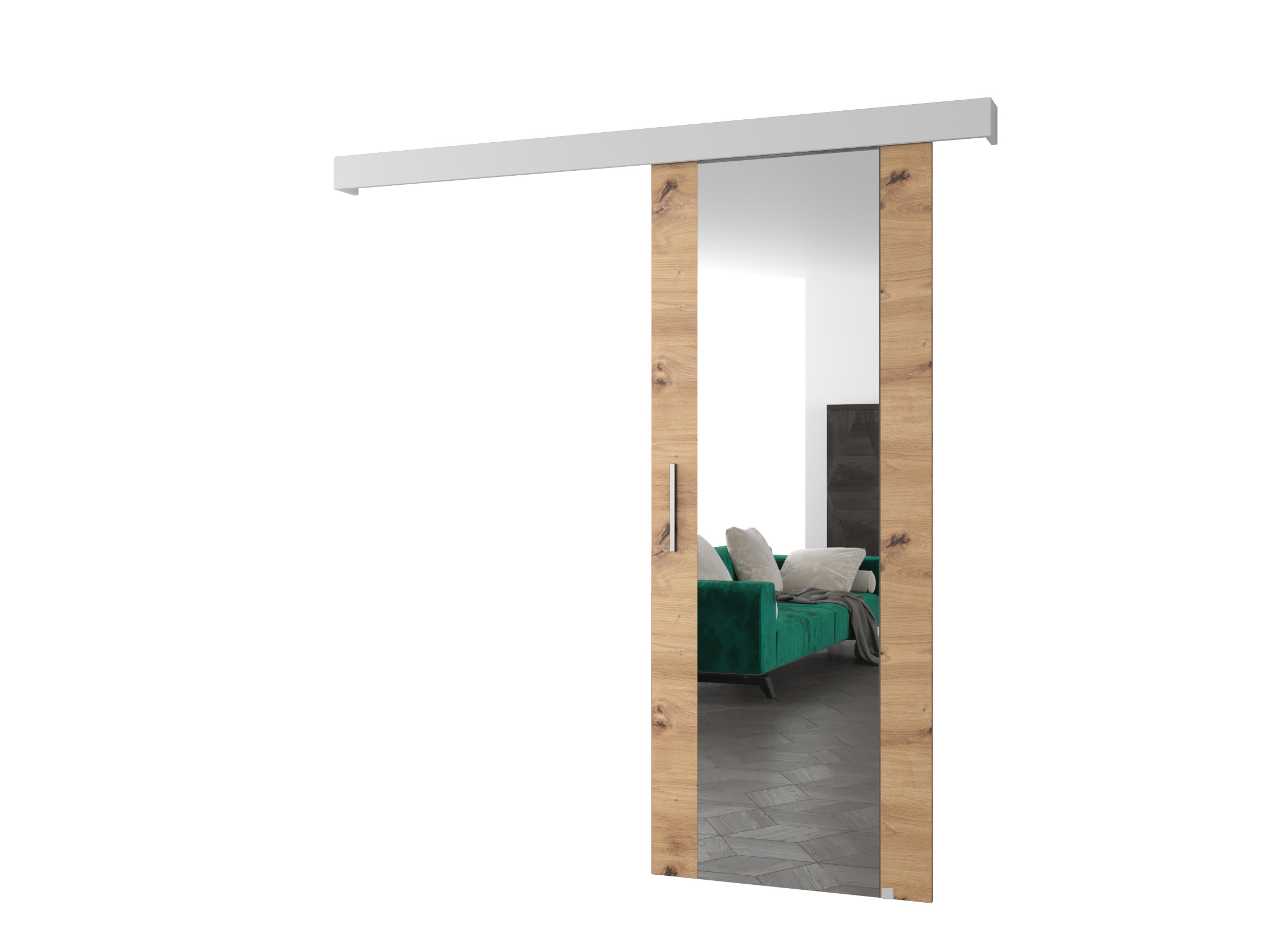 Uși culisante 90 cm Sharlene II (stejar artisan + alb mat + argintiu) (cu oglindă)