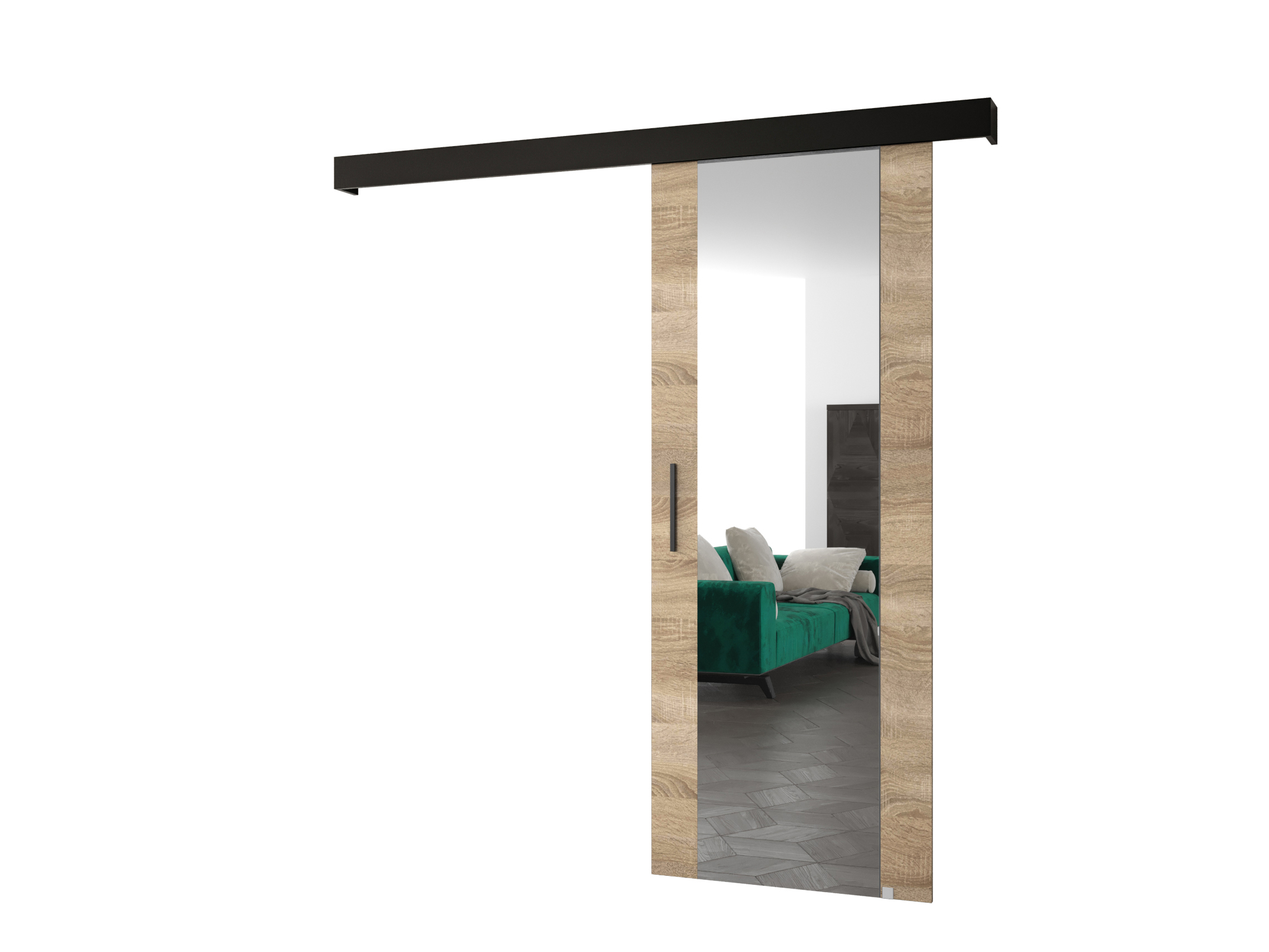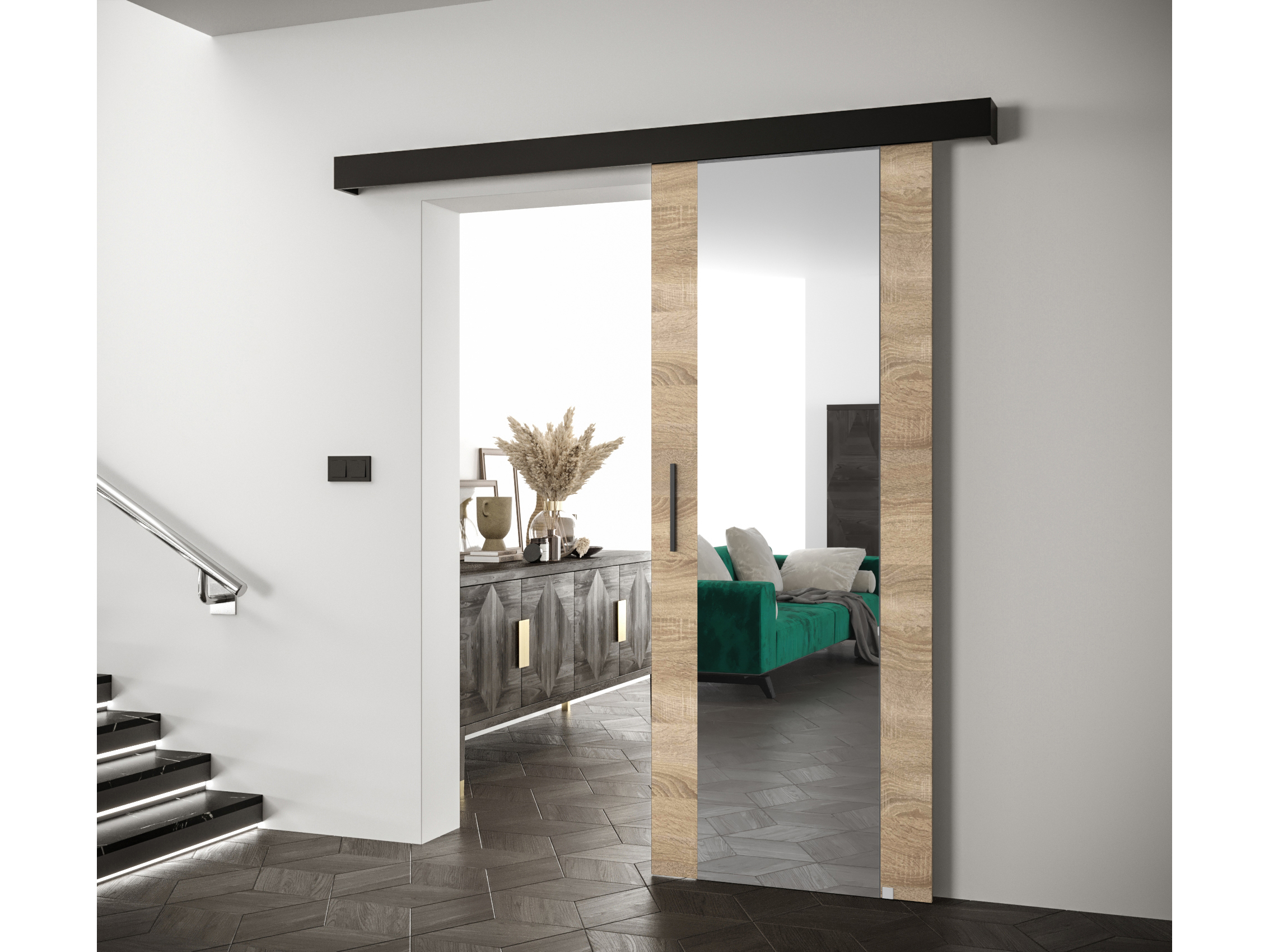 Uși culisante 90 cm Sharlene II (stejar sonoma + negru mat + negru) (cu oglindă)