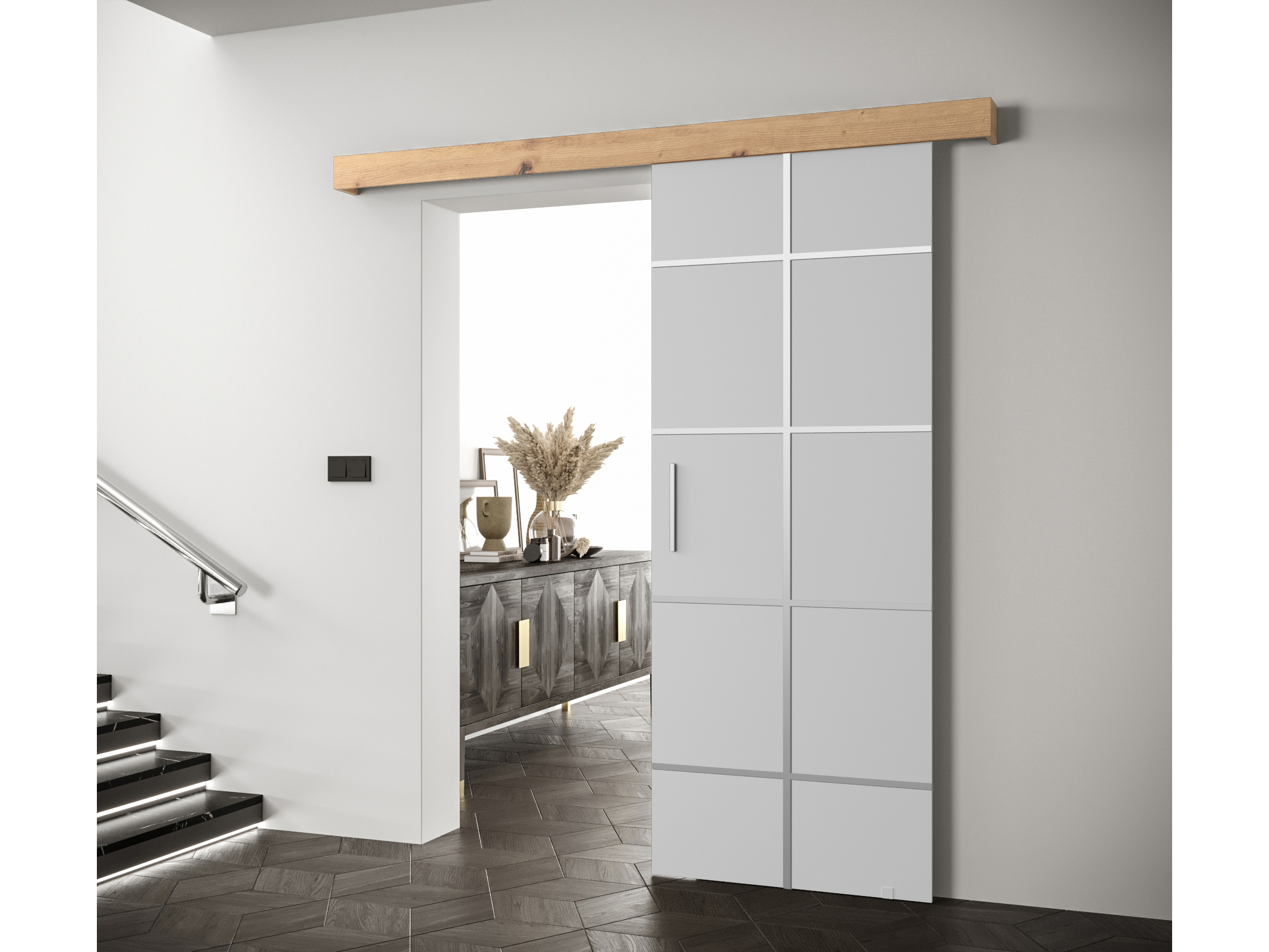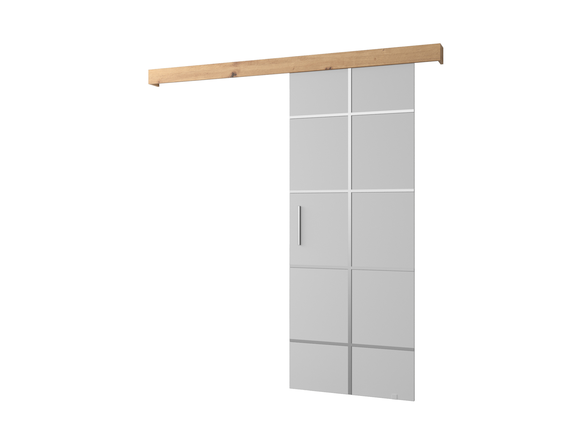Uși culisante 90 cm Sharlene III (alb mat + stejar artisan + argintiu)