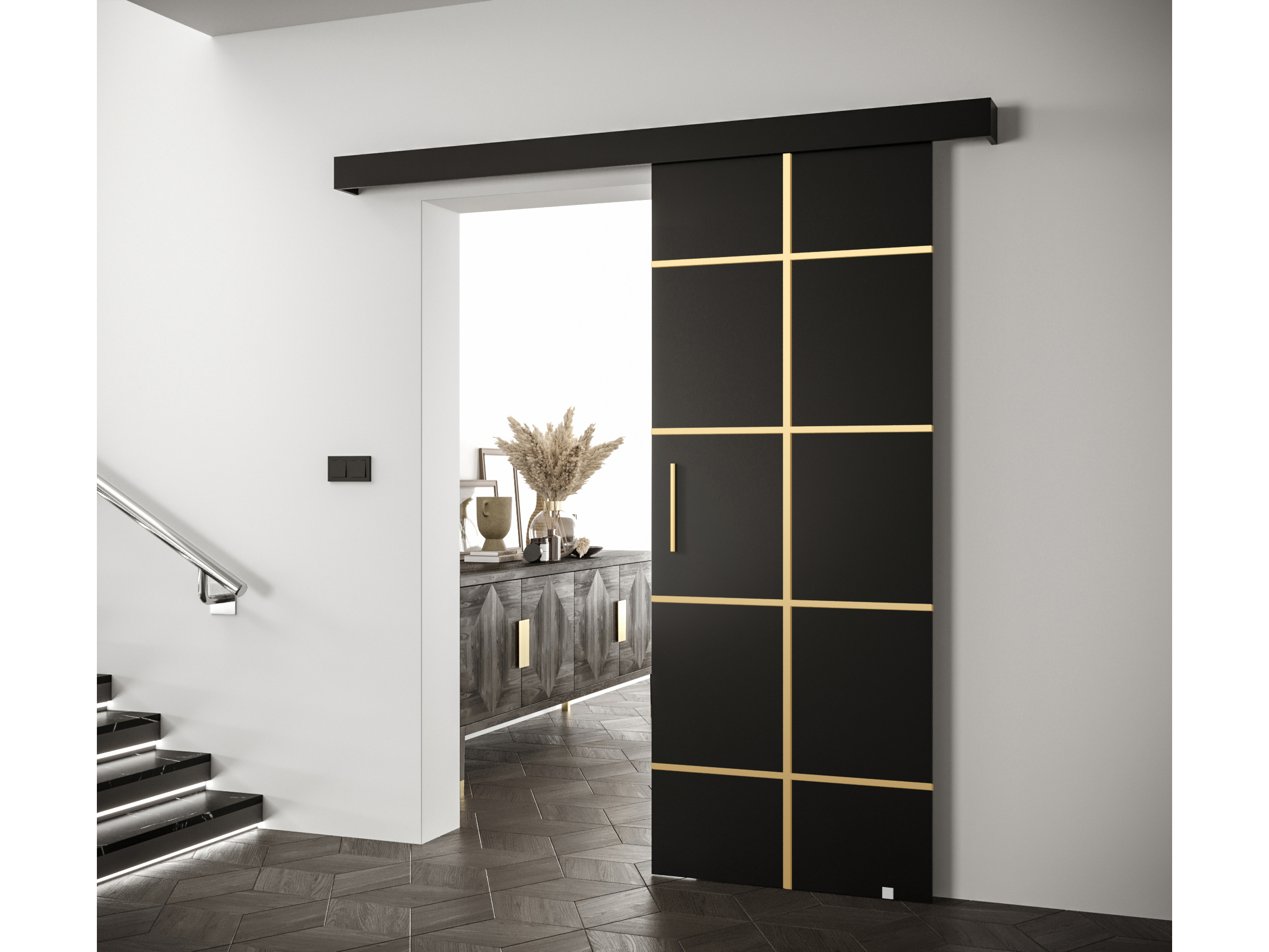 Uși culisante 90 cm Sharlene III (negru mat + negru mat + auriu)